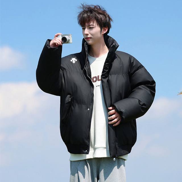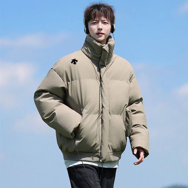 Descente Down-Filled Hooded Jacket, unisex leather jacket, a must-have for your winter wardrobe. It looks amazing on! Filled with pure natural hand-stuffed down cotton, each part is fully padded for a warm and cozy feel! Features a classic printed logo on the front. Highly recommended by influencers on Xiaohongshu and Douyin! Perfect details, excellent warmth