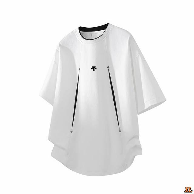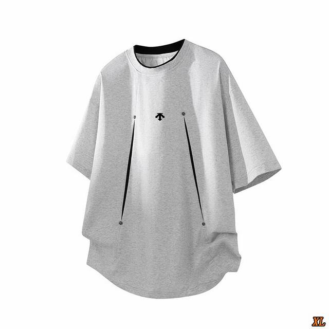 Descente Exclusive New Summer High-Quality Crew Neck T-Shirt, Deconstructed Patchwork Design, Short-Sleeve T-Shirt, Trendy Brand, Loose Fit, Casual, Five-Quarter Sleeve. This season's main item, ample stock, highly recommended, high-end quality, classic design, excellent workmanship, classic and versatile, excellent fit.