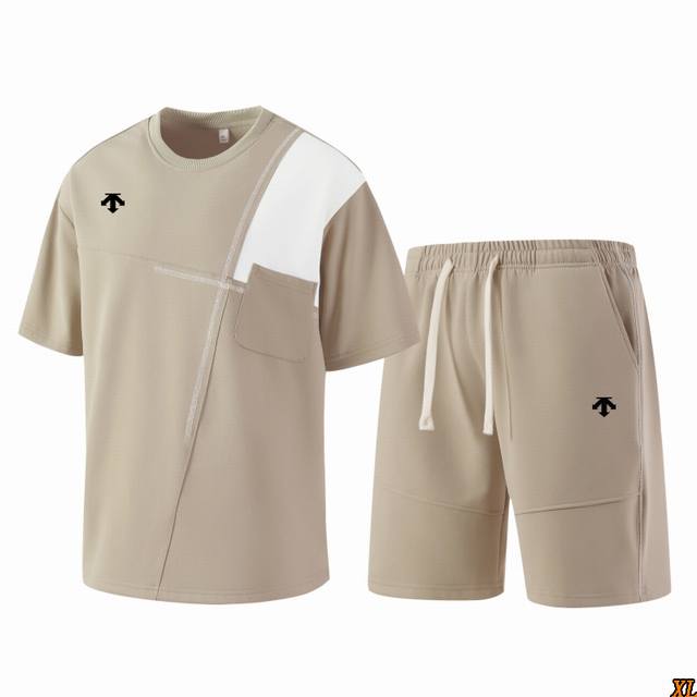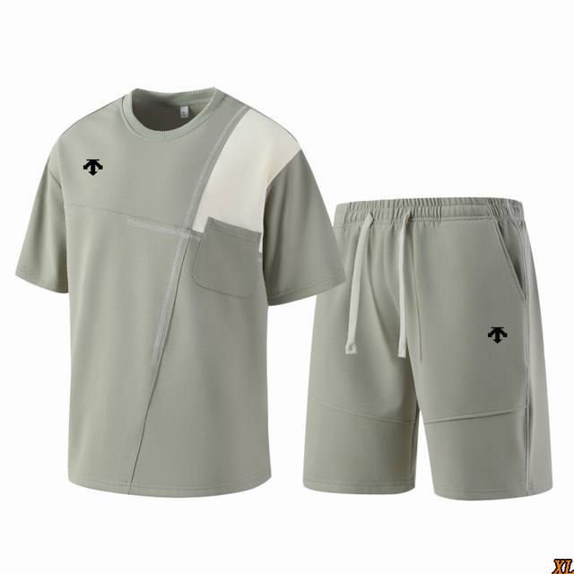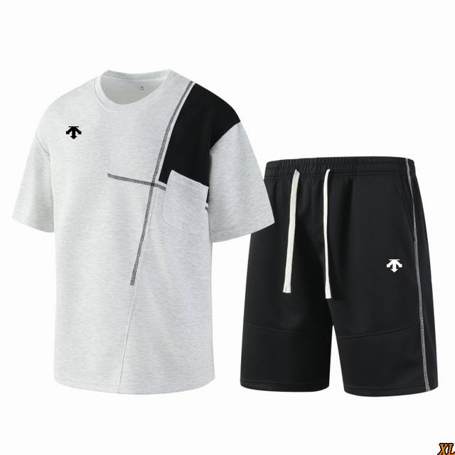 Descente Exclusive Real Shot New Summer High-Quality Short-Sleeve and Shorts Set, Color-Blocked Sportswear Casual Suit, This Season's Main Product, Ample Stock, Confident Recommendation, High-End Quality, Classic Design, Excellent Workmanship, Classic and Versatile, Excellent Fit.