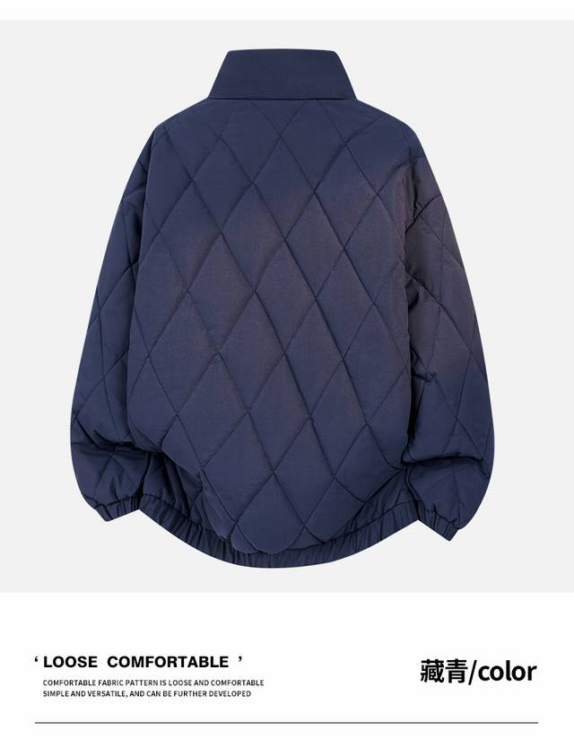 Descente Exclusive Real Shot New Winter High-Quality Diamond Pattern Stand Collar Cotton Coat, Trendy and Versatile Thick Cotton Jacket, Couple's Hong Kong Style Casual Loose Cotton-padded Jacket, This Season's Main Feature, Ample Supply, Confident Recommendation, High-End Quality, Classic Design, Excellent Workmanship, Classic and Versatile, Excellent Wearing Effect DDD