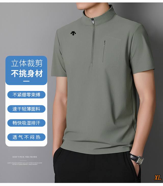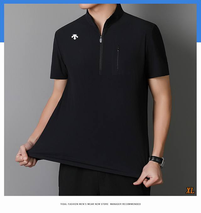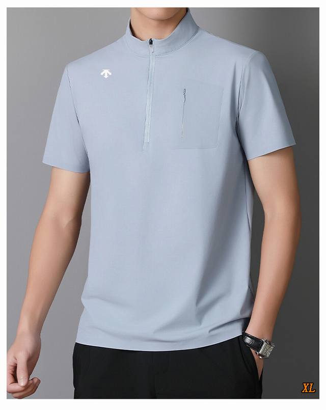 Descente exclusive real shot of the new summer high-quality versatile loose fashionable breathable ice silk stand-up collar short-sleeved outdoor sports leisure T-shirt Polo shirt, the main product of this season, sufficient supply, rest assured to promote, high-end quality, classic design, excellent workmanship, classic and versatile, excellent effect on the body