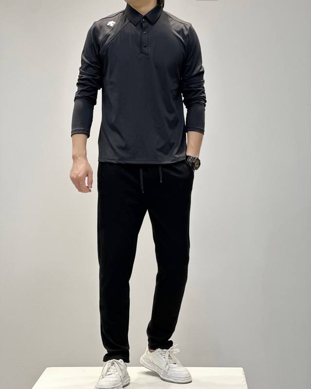 Descente Men's Casual Sports Polo Long-Sleeve Shirt. Made of a blend of nylon and spandex, this shirt offers a perfect balance of softness and silkiness without sacrificing drape or smoothness! It boasts the delicate texture of pure cotton, exuding style and sophistication. Exquisite four-needle, six-thread stitching! Stylish and elegant! Simple yet fashionable! Excellent functionality and practicality