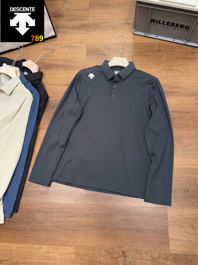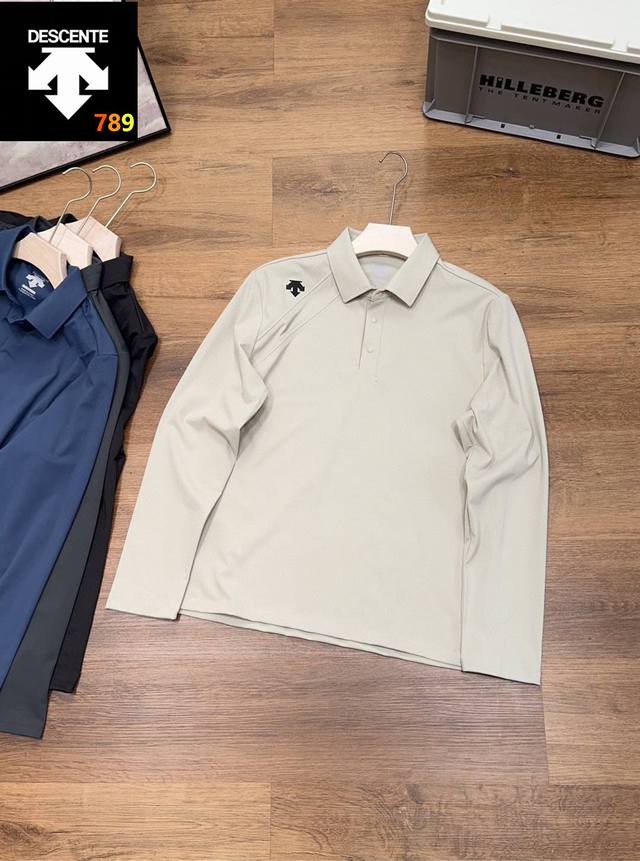Descente Men's Casual Sports Polo Long-Sleeve Shirt (Ddd) Made of a blend of nylon and spandex, this shirt offers a perfect balance of softness and silkiness without sacrificing drape or smoothness! It boasts the delicate texture of pure cotton, exuding style and sophistication. Exquisite four-needle, six-thread stitching! Stylish and chic! Simple yet stylish! Excellent functionality and practicality