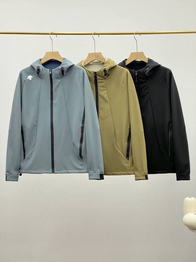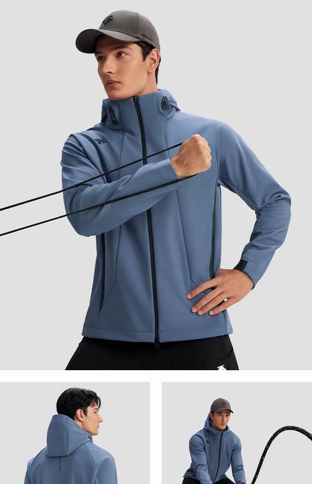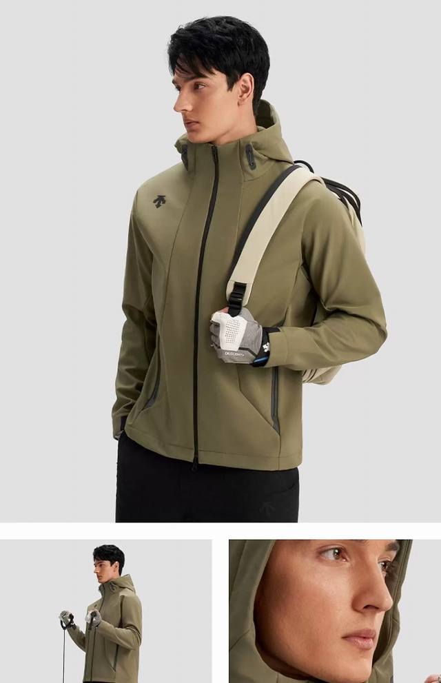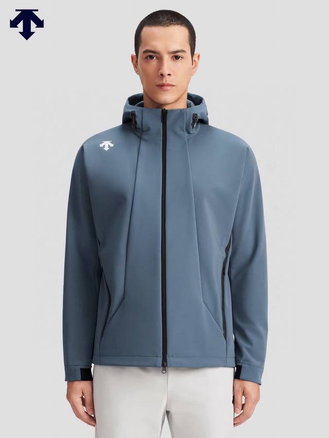 Descente Men's Fleece-lined Waterproof Fitness Woven Hooded Jacket. Made with f