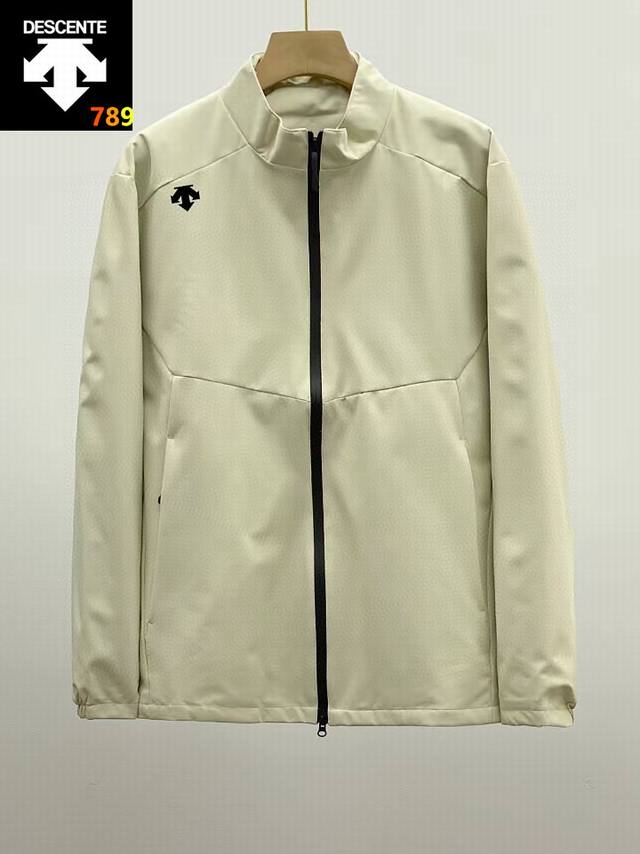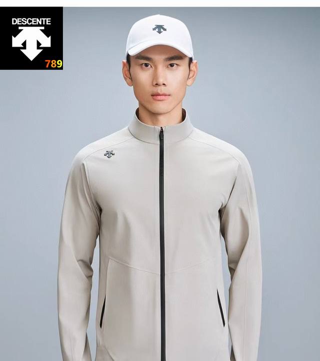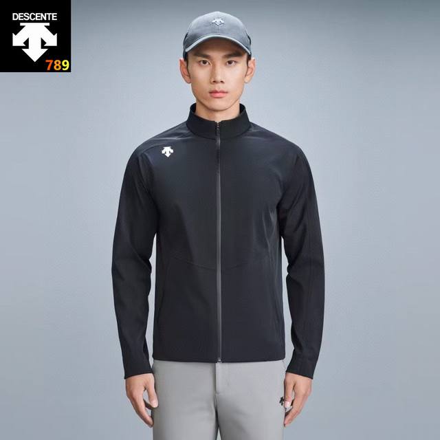 Descente men's outdoor windproof and waterproof stand collar casual zipper cardigan golf woven jacket.