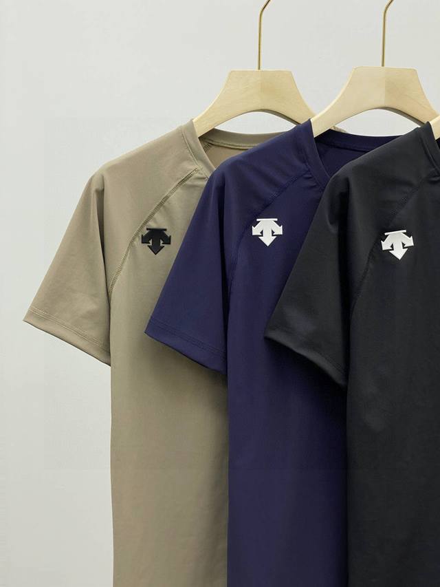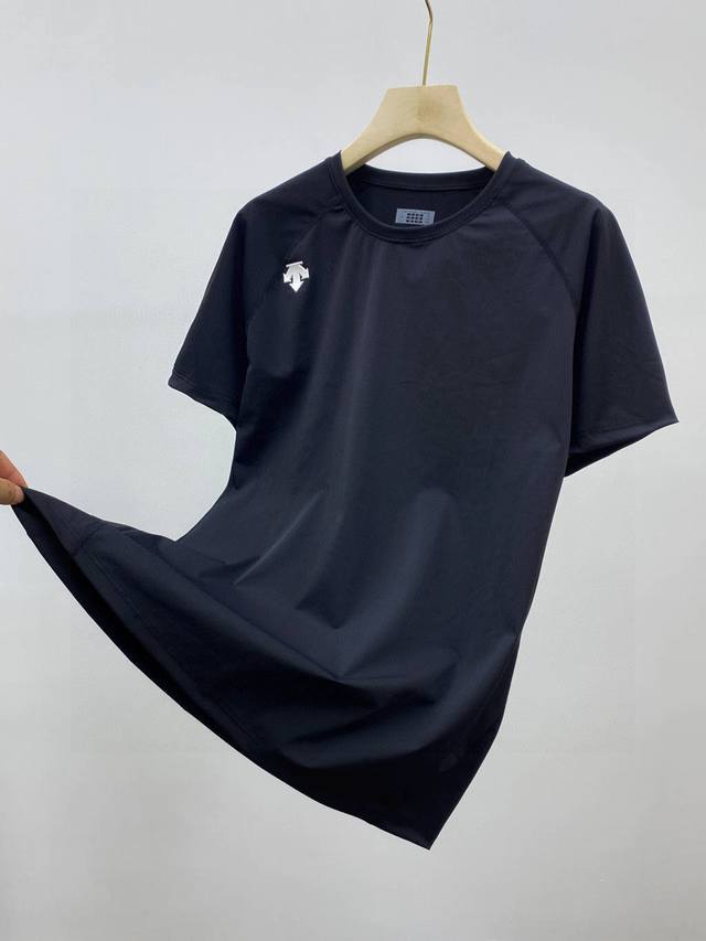 Descente* Men's round neck quick-drying summer short-sleeved T-shirt with drawstring! Full of details! Breathable laser holes on the back! Three-dimensional cutting!