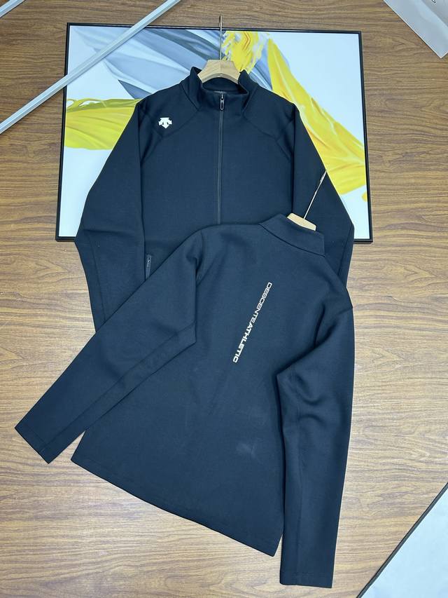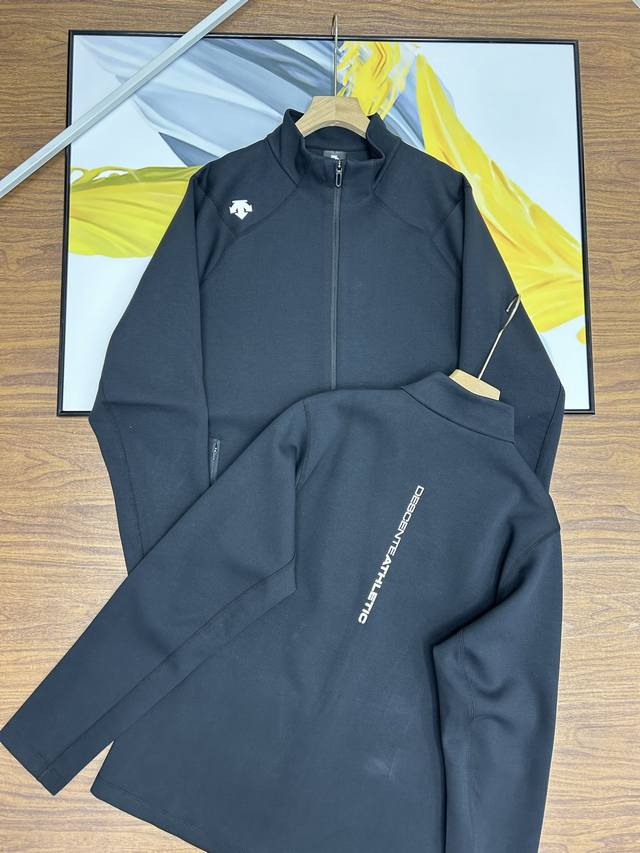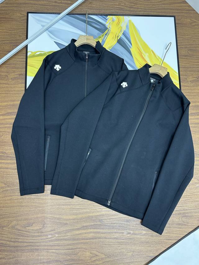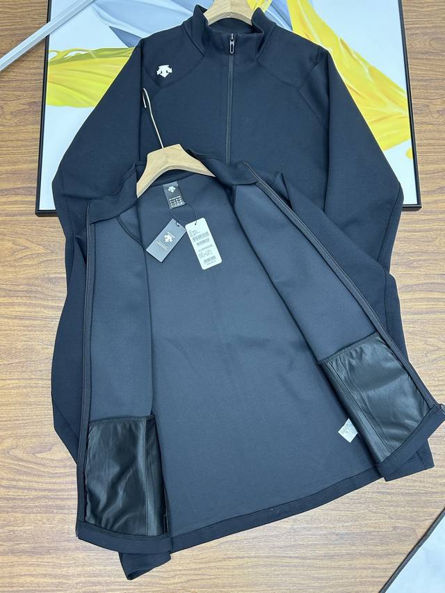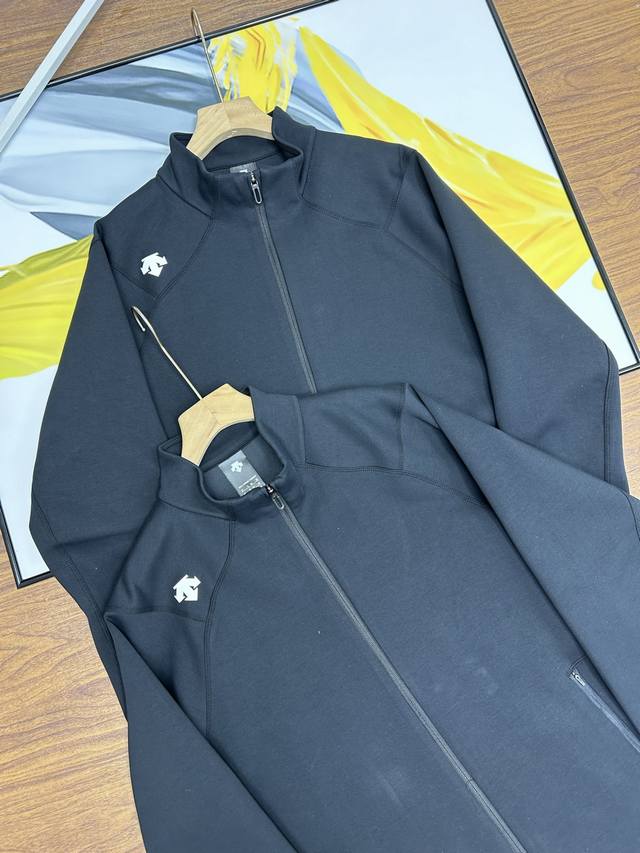 Descente Men's Stand-Up Collar Jacket. This Descente Training Series men's knitted sports jacket is made of textured knit fabric for spring training. The fabric is smooth, firm, and naturally sculpted. The regular-fit cut fits closely to the body, providing extension and stretch for movement and rotation. The classic small stand-up collar creates a simple, textured look. Wear it alone or layered with a vest from the series. Suitable for training, sports, leisure, and everyday life. This regular-fit executive jacket is a thin, zippered jacket made of lightweight, breathable fabric that's comfortable and skin-friendly. The zipper design makes it easy to wear, making it suitable for both outdoor and business use, regardless of age, height, or body shape. The straight, firm, and slimming effect makes it a perfect match for a variety of workouts, fitness, and running. ,