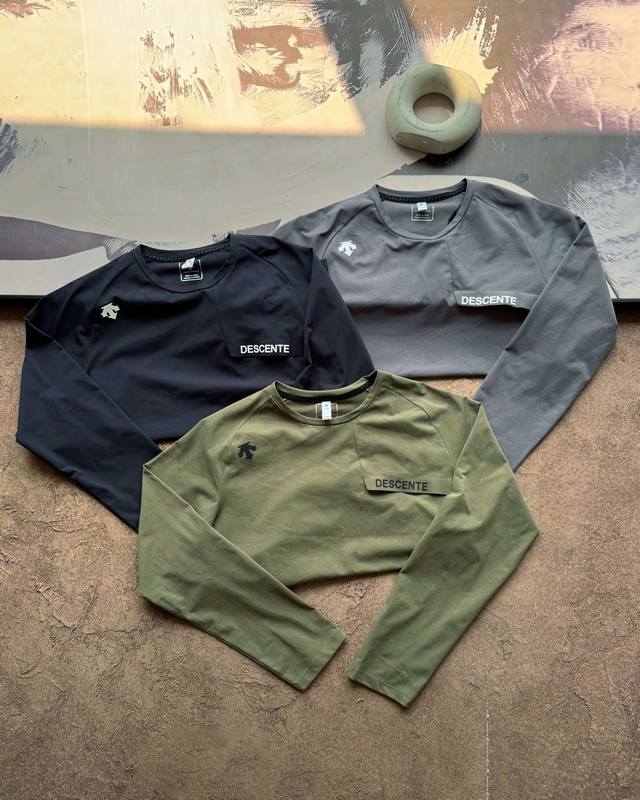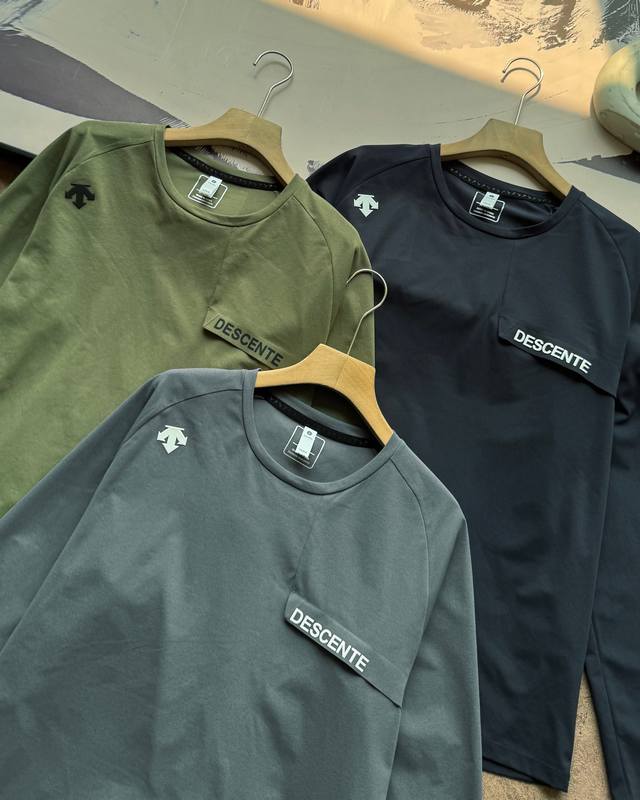 Descente Outdoor Quick-Drying Breathable Crew Neck Long-Sleeve T-Shirt/Sweatshirt. Featuring