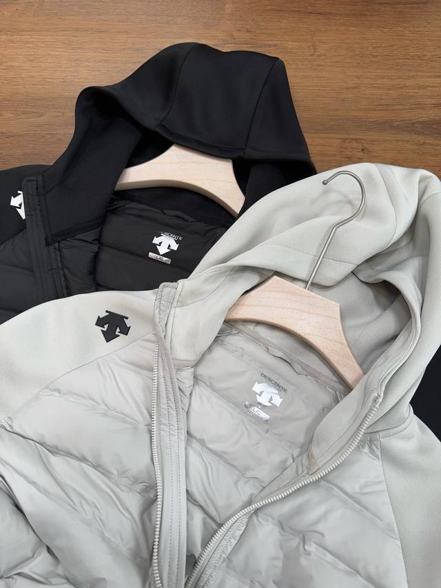Lightweight couple's hooded down jacket with raglan sleeves and knit patchwork design, more casual and stylish A9983. Seamless heat-sealed compartmentalized down filling, truly achieving no down leakage or leakage. Slanted zipper pocket design for safer and more user-friendly storage. Multiple pockets inside for convenient storage, with meticulous attention to detail in the lining binding and trim. Made with new national standard duck down with a down content of up to 90%, high loft, lighter and warmer, simple and casual style