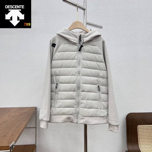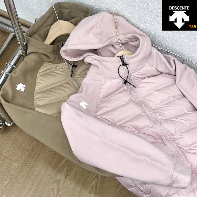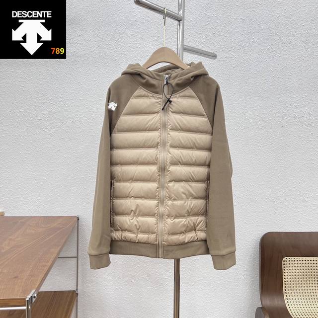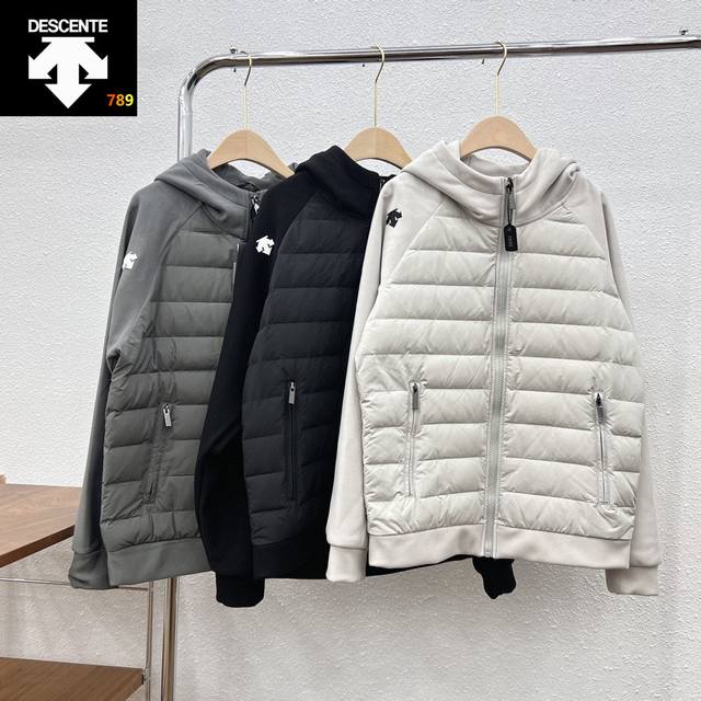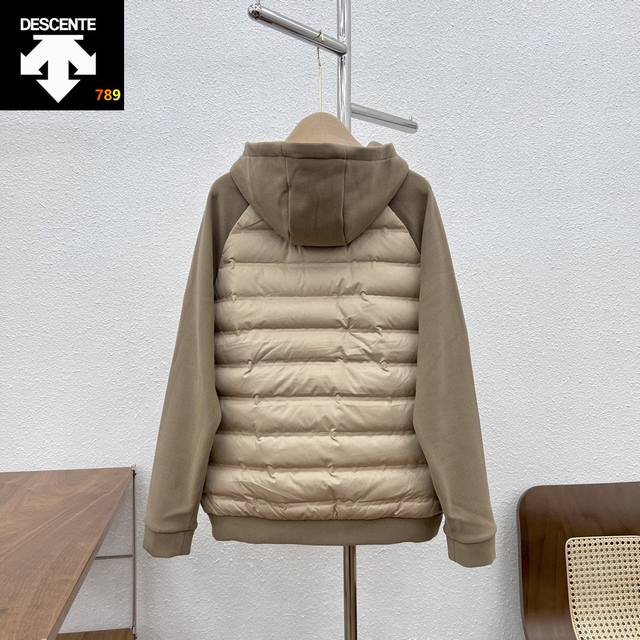 Descente Patchwork Sleeve Hooded Down Jacket DDD New Lightweight Patchwork Down Jacket Ddd The body is filled with imported 90% white duck down Ddd Lightweight and exceptionally warm Ddd High-density fleece lining on the sleeves, style number 21092200 Ddd Windproof and thick! One piece to easily get through winter! DDD Ddd
