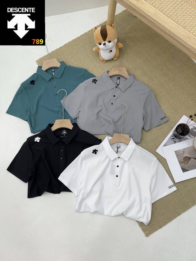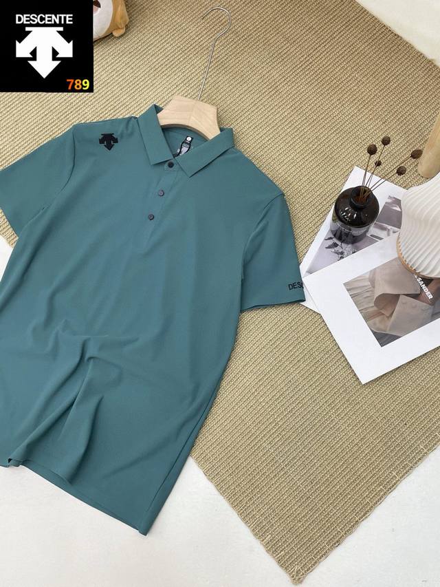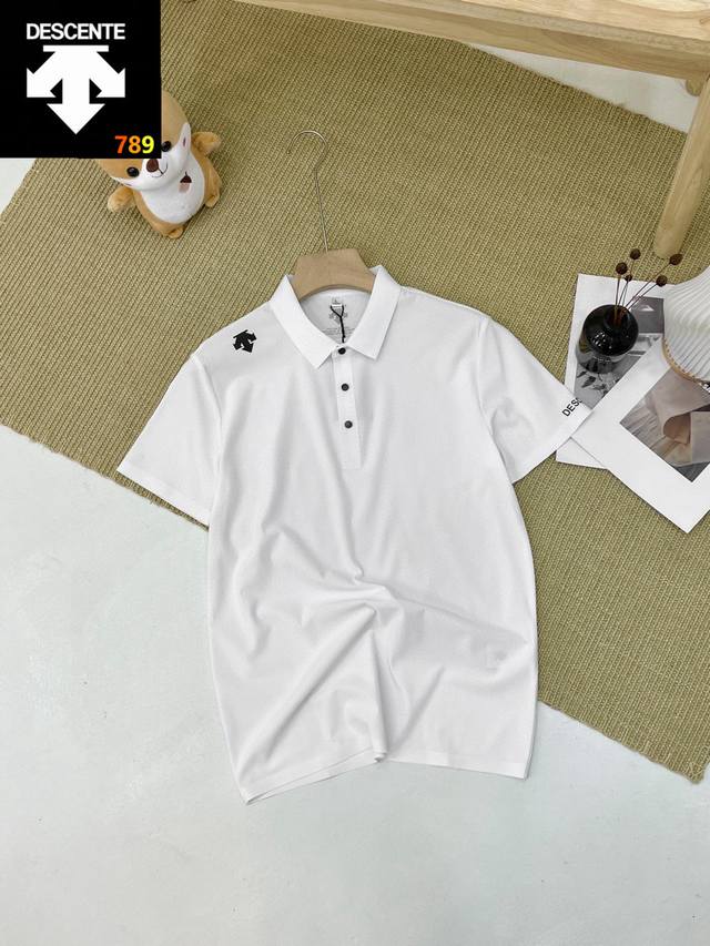 Descente Summer Business Casual Ice Silk Short-sleeved T-shirt Men's Lapel High-end Solid Color Half-sleeved T-shirt Polo Shirt