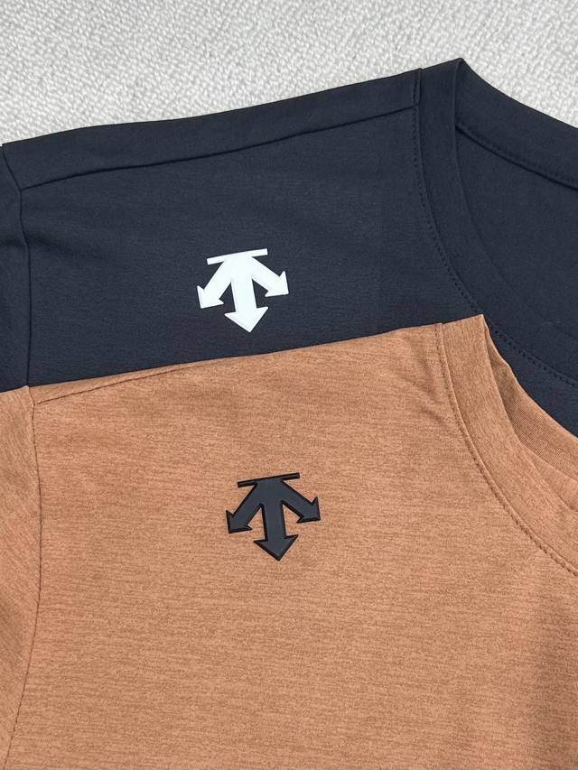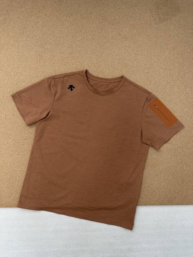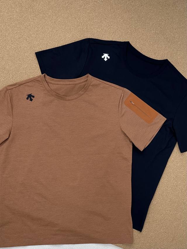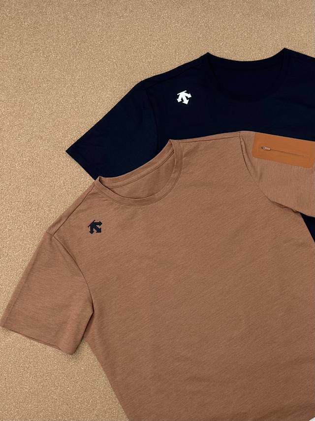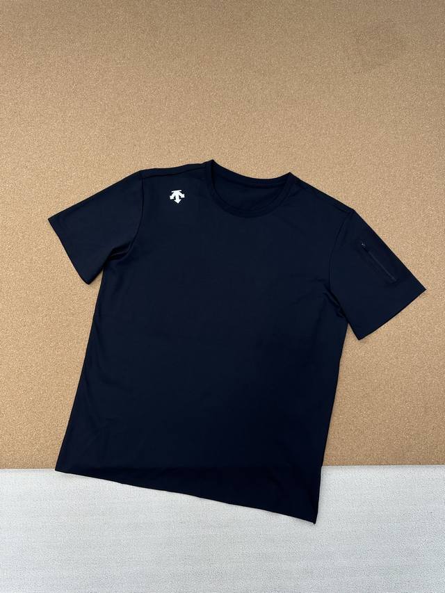 Descente Summer sports round neck pullover with logo print pattern and zipper decoration, solid color short-sleeved T-shirt top, unisex style