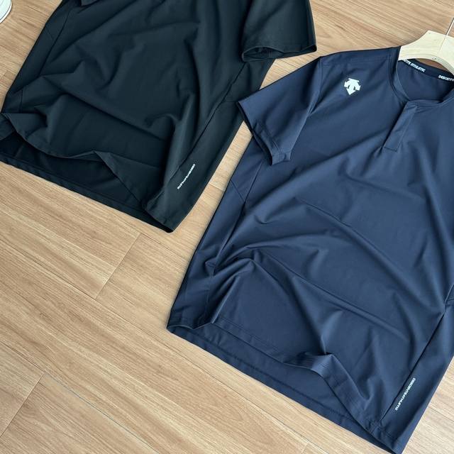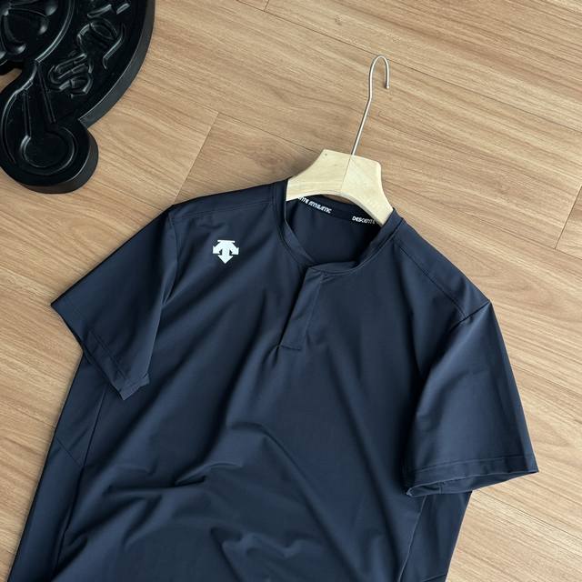 Descente Training Series Men's Henley Collar Quick-Drying Short-Sleeved T-shirt.