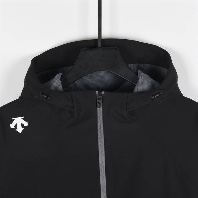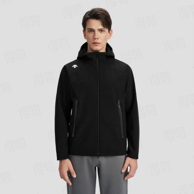 Descente Water-Repellent Composite Softshell Hooded Jacket, Black ( )
