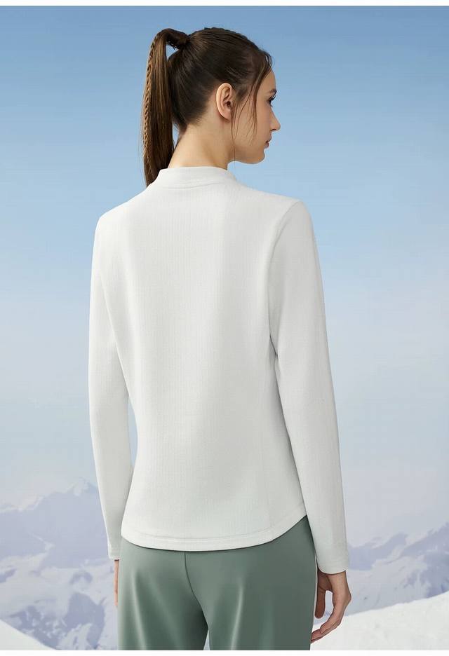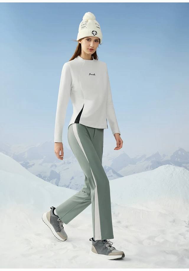 Descente Women's Ski Series Women's Half-High Collar Fleece Long-Sleeve Knit Top D4432Stl91 Made of polyester-cotton fleece fabric, this stretchy and skin-friendly long-sleeve base layer is moisture-wicking, stretchy, and comfortable against the skin. Features a Dst print design on the front, paired with contrasting color blocking at the hem, enhancing its visual design while maintaining a simple and sophisticated look. The long-sleeve half-high collar design provides excellent warmth for outdoor activities, with a soft and comfortable feel that reduces skin friction. Very comfortable against the skin, the highly elastic fabric is extremely warm and comfortable! The feel is very comfortable and delicate, exuding a high-end feel