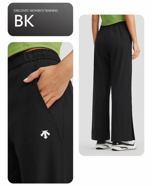 Descente Women's Training Early Autumn Cooling Moisture-Wicking Quick-Drying Woven Straight-Leg Pants with Slits. These pants are incredibly flattering, making legs appear longer and straighter! Made with a lightweight feel and Lycra four-way stretch fabric, they offer both a cooling sensation and quick-drying properties. The straight-leg cut flatters the legs and is suitable for both sports and everyday wear, ensuring comfort during activity while showcasing a minimalist style through clean lines, balancing functionality and practicality. Color: Premium Gray, Classic Black Sizes: M-XL M: Hips 96cm, Length 101cm, Elastic Waist 69cm, Suitable for 90kg/105kg L: Hips 102cm, Length 102cm, Elastic Waist 73cm, Suitable for 105kg XL: Hips 106cm, Length 104cm, Elastic Waist 77cm, Suitable for 135kg XXL: Hips 106cm, Length 106cm, Elastic Waist 81cm, Suitable for 135kg