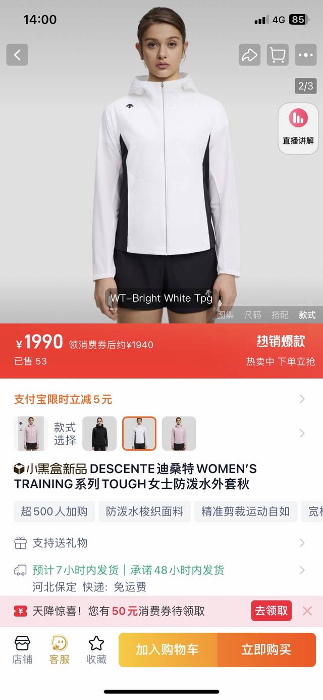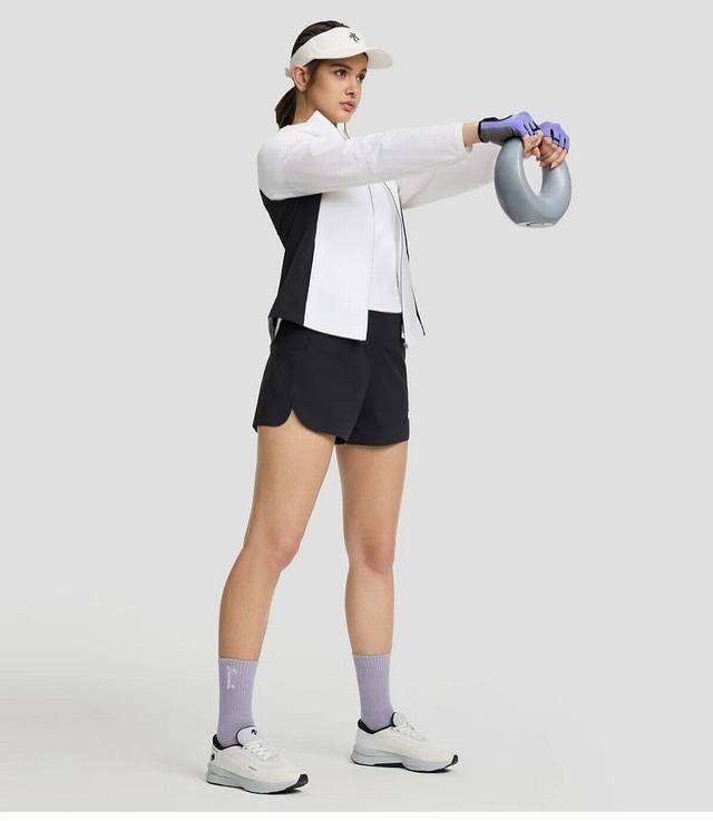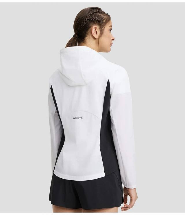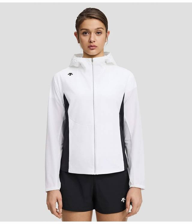 Descente Women's Training Series Tough Water-Repellent Jacket (Autumn) - This hooded athletic jacket is made from a high-quality woven fabric. A true 1:1 replica. Features a contrasting white color-blocked fabric that won't fade or stain. Highly wrinkle-resistant, breathable, soft, and durable. The four-way stretch fabric is lightweight, structured, and full of quality details, providing a comfortable wearing experience. Suitable for various training and everyday life scenarios. Sizes: S-XL