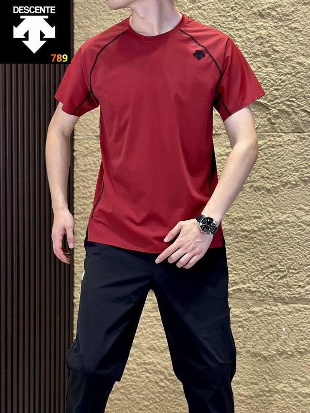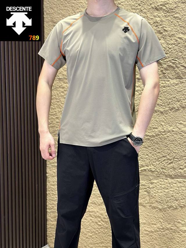 Descente's contrasting, short-sleeved, outdoor, quick-drying, breathable, four-needle, six-thread, laminated T-shirt.