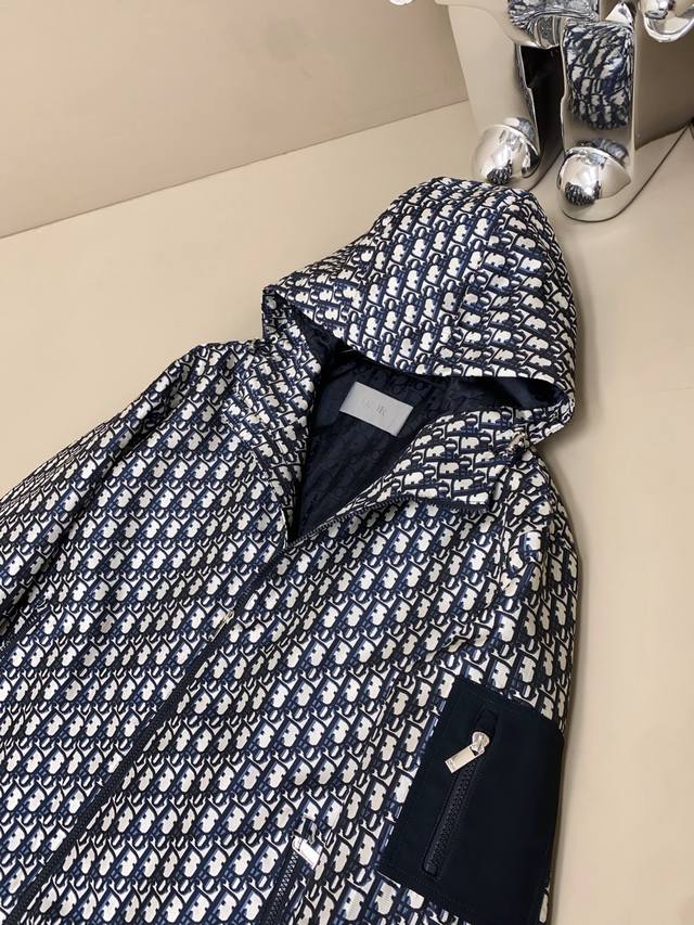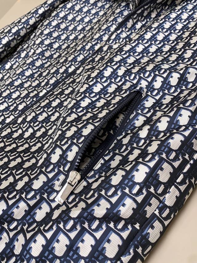 Detailed Workmanship: Made from imported high-density pure cotton, this fabric boasts superior windproof and water-repellent properties, is wear-resistant and tear-resistant, and has an excellent texture and appearance! The classic Ddd monogram logo is prominently displayed throughout, making it highly recognizable and exuding a sense of quality. The jacquard weave is exquisite, with clear and glossy lettering details that radiate luxury under light. Wearing this will instantly elevate your appearance and style! The custom-made glossy metal zipper closure, engraved with the Cd logo, is complemented by zippered pockets on the sleeves. The hardware is also of exceptional quality, meeting top-tier standards. The attention to detail is impeccable.