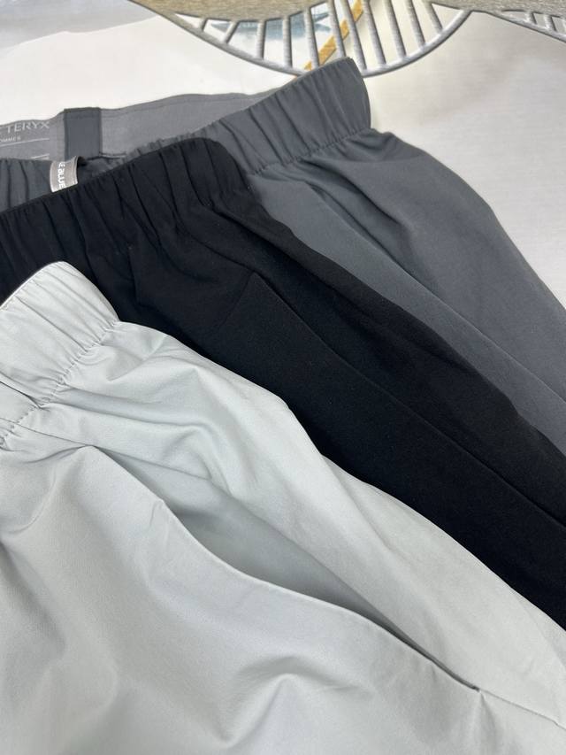Details of the Arc'teryx Arc'teryx Breathable Men's Quick-Drying Two-Tone Embroidered Small Logo Pants. A true top-tier product, an absolute steal! These pants combine functionality with a stylish silhouette, perfectly suited for both outdoor and casual wear. Let's first talk about the price of these two-tone quick-drying pants; this truly represents the value for money! These pants are designed for summer outdoor use, prioritizing quick-drying and breathability. The fabric also boasts excellent stretch! Even when wearing them in the water, they won't feel tight! Their smoothness and durability are unmatched! Don't miss these Arc'teryx pants!