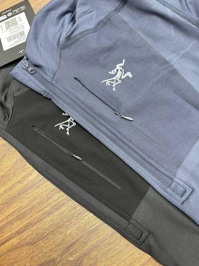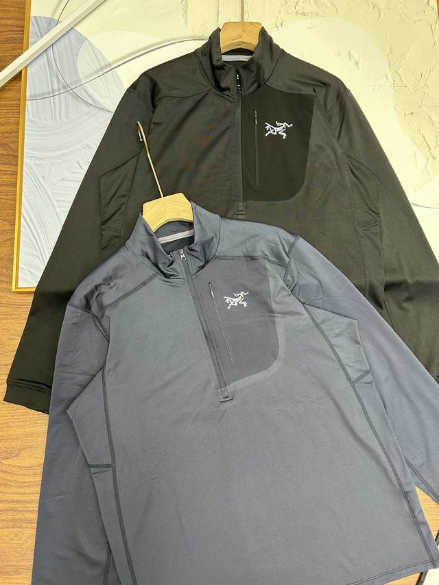 Details of the Arcteryx Rho Lt Zip men's micro-fleece long-sleeved half-zip base layer. This men's outdoor, small stand-up collar, half-zip top is perfect for sports, hiking, fitness, and everyday commuting. It's fitted without being tight, loose without being baggy, and comfortable without being constricting! The precise, scientific, three-dimensional cut offers a practical fit for everyone, and its exceptional durability is truly worth it! The logo on the left chest enhances brand recognition and washability! The small stand-up collar and half-zip pullover design make it easy to put on and take off, while also providing an extra inch of gentle protection around the neck! Perfect for outdoor activities in autumn and winter! The high-quality, locked-edge reinforcements not only confirm the brand's identity but also ensure durability! The attention to detail is truly exceptional! The high-temperature heat transfer logo design that won't easily fall off is a great detail. This is a hot-selling item with a very high repurchase rate! The fabric is stretchy and skin-friendly and comfortable! In two words: amazing!