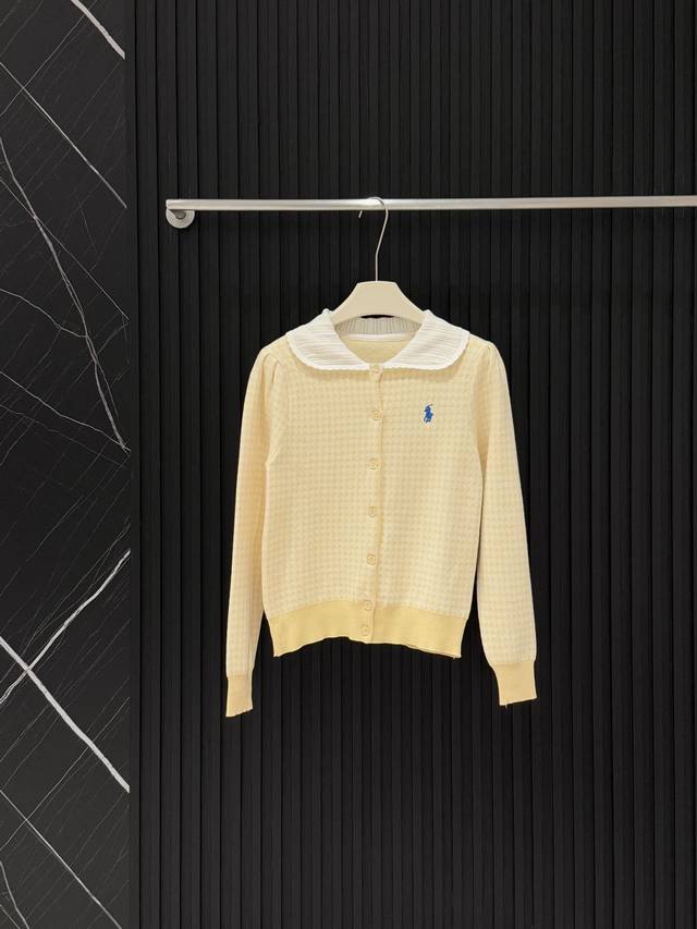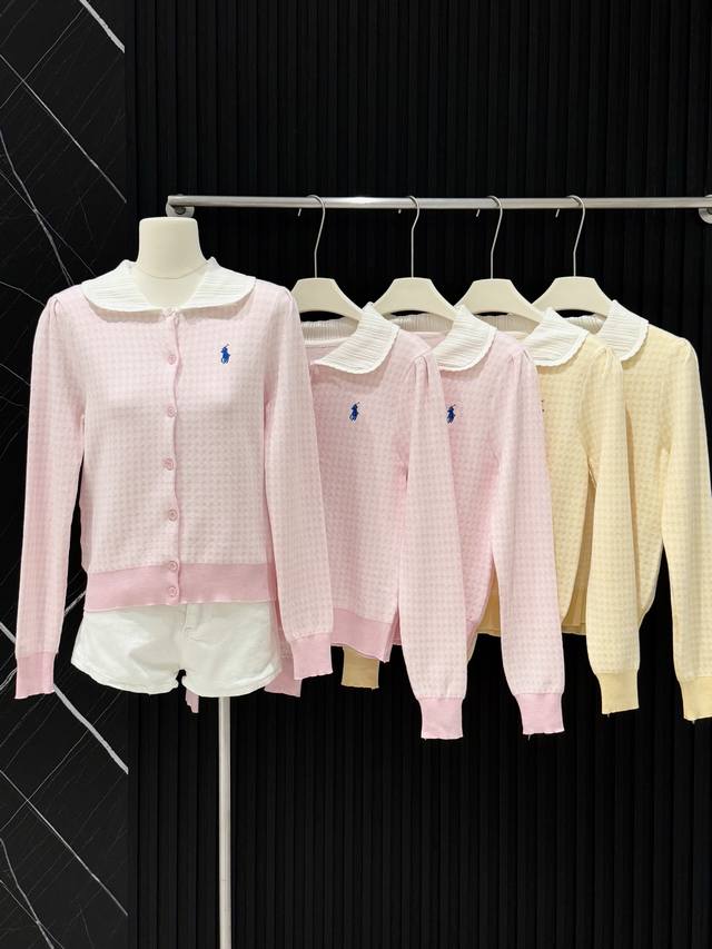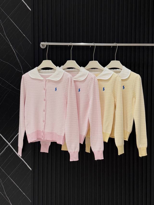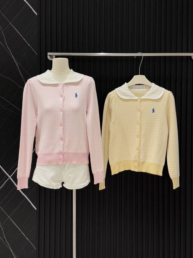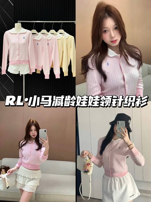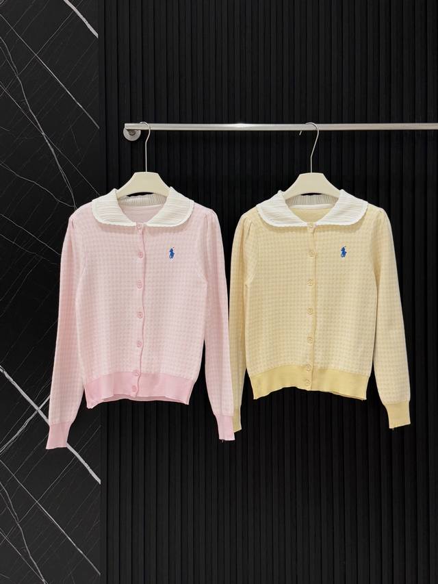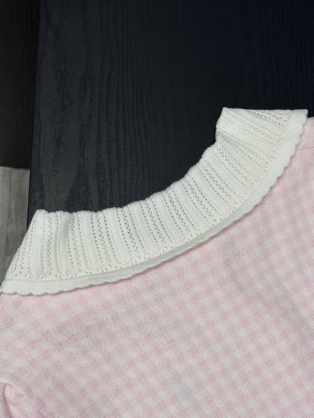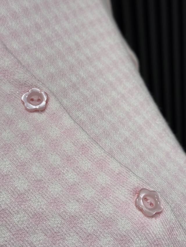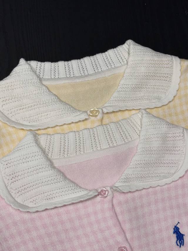 Love these two plaid knitted cardigans! Fresh goose yellow, gentle pink, sweet lace doll collar, delicate small embroidery embellishment, soft and sticky knit texture, warm and girly in autumn and winter ~