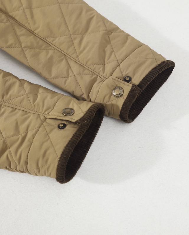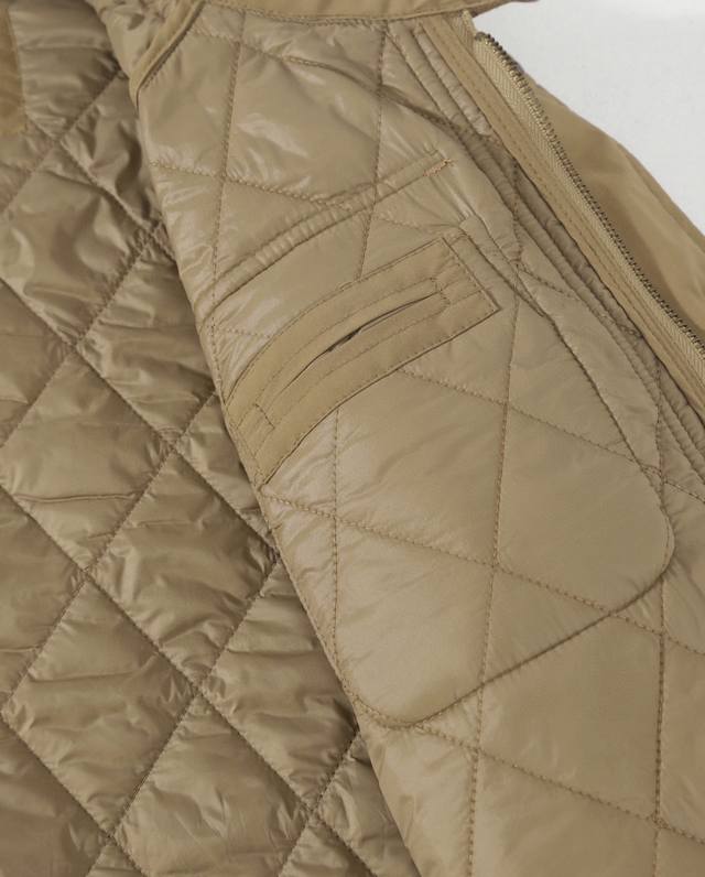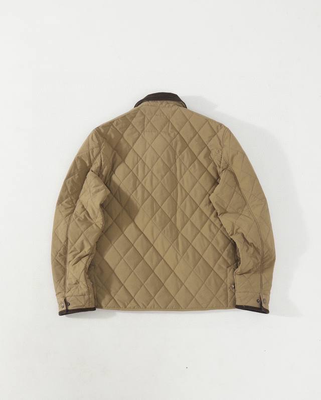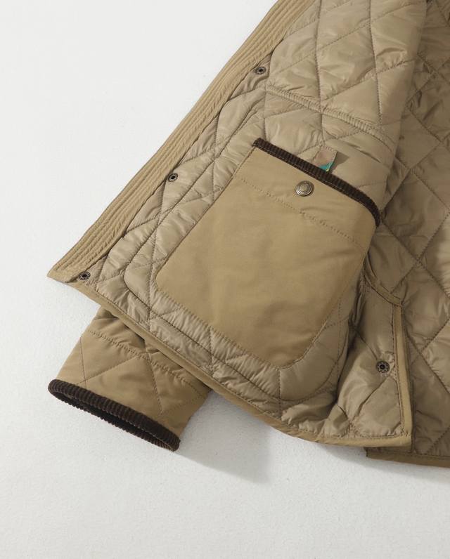 's entire piece features a diamond-patterned quilting technique, creating a stylish, three-dimensional structure. This is the kind of cotton jacket that's sure to turn heads when worn.