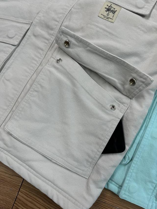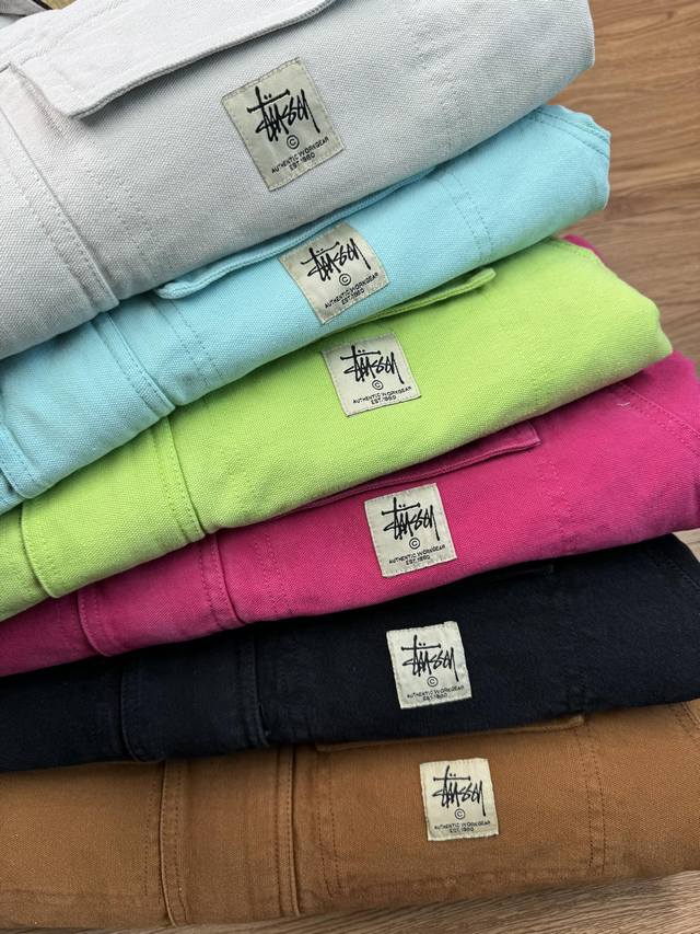 Stussy originated in the surfing mecca of Southern California. Founder Shawn incorporates skatewear, workwear, and old school uniforms into Stussy's clothing, creating a distinct streetwear style. Continuing the Stussy streetwear aesthetic, the brand redefines the look and feel of casual wear with a youthful, athletic spirit, sweeping the streetwear landscape. This new classic and trendy lapel jacket features a cotton twill canvas texture that meets the needs of streetwear trendsetters for spring and autumn, with a refined, rich, and substantial silhouette. The cultural embodiment of Stussy from different periods. The small embroidered label on the left chest is the finishing touch. All accessories are customized and the restoration is perfect.