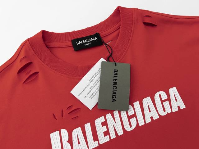 Details, top version. Official website quality Balenci*Ga Paris. Classic letter logo printed garment washed and distressed short-sleeved T-shirt with holes and cuts. Brick cabinet synchronization. Fabric is made of Paris Zp custom-woven and dyed cotton double yarn compact cotton. Weight 260 grams, clean cloth surface. Clear cloth texture, soft and comfortable. The thread is fixed and dyed without color difference. The classic pattern is printed with environmentally friendly imported materials, straight cracks and cracked glue. Precision printing screen, clear letters, three-dimensional effect. Restore brick cabinet. Garment washed and distressed, multiple manual grinding and cutting, overweight process production, huge market currency, welcome to compare, version uses Os loose shoulder version. Unisex style