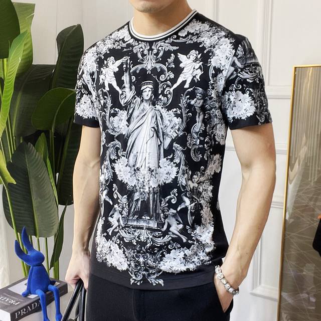 Dg 2025 Spring/Summer Premium Short-Sleeve T-Shirt, Official Website Synchronized, High-Quality Custom Made with Imported Double Mercerized Cotton Fabric, Top-Tier Factory Craftsmanship, Fashionable Brand Printed Rhinestone Logo Design, Soft and Delicate to the Touch, Skin-Friendly and Comfortable, Versatile and Casual, Great for a Stylish Look, A Must-Have for Trendy Men. Normal Sizes: M-3XL.
