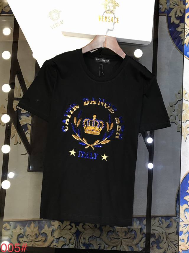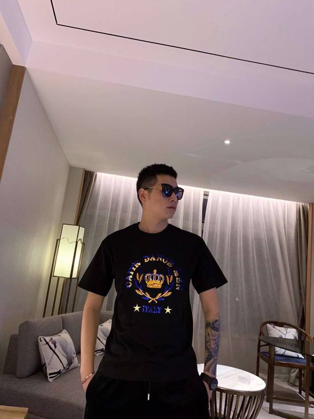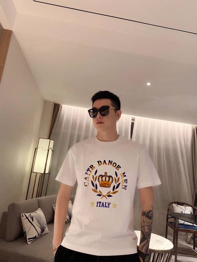 Dg Spring/Summer New Arrival Brand Design Pattern Embroidery Heavy Craftsmanship Black, White, Red, Yellow, Blue High-Quality Double-Strand Mercerized Cotton Fabric M~3XL DDD