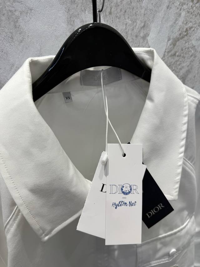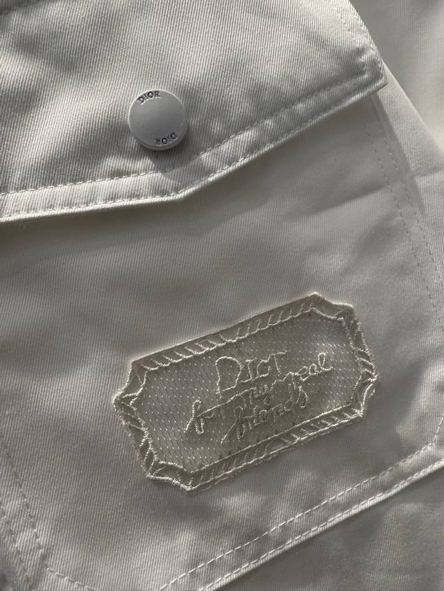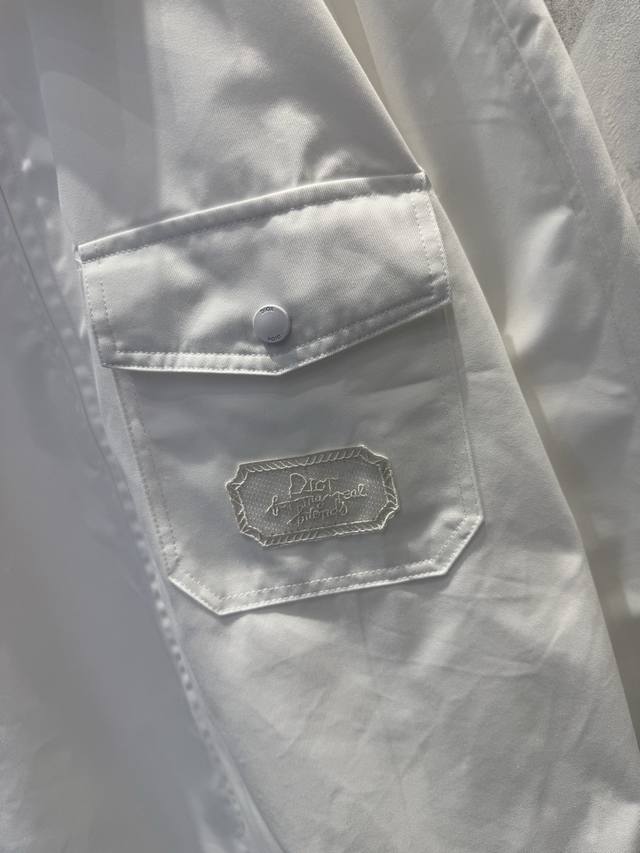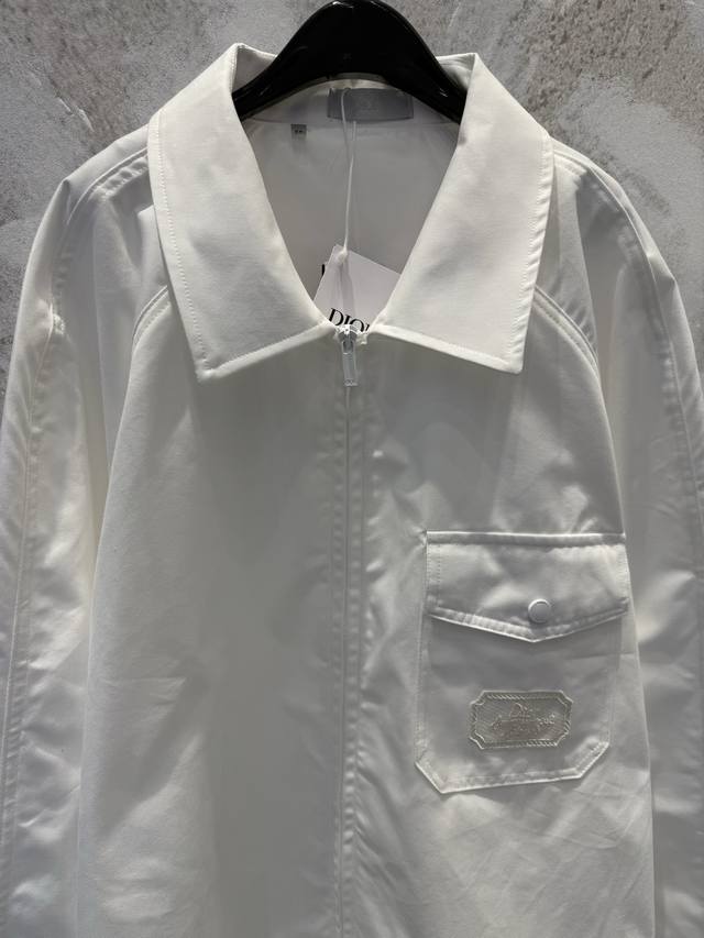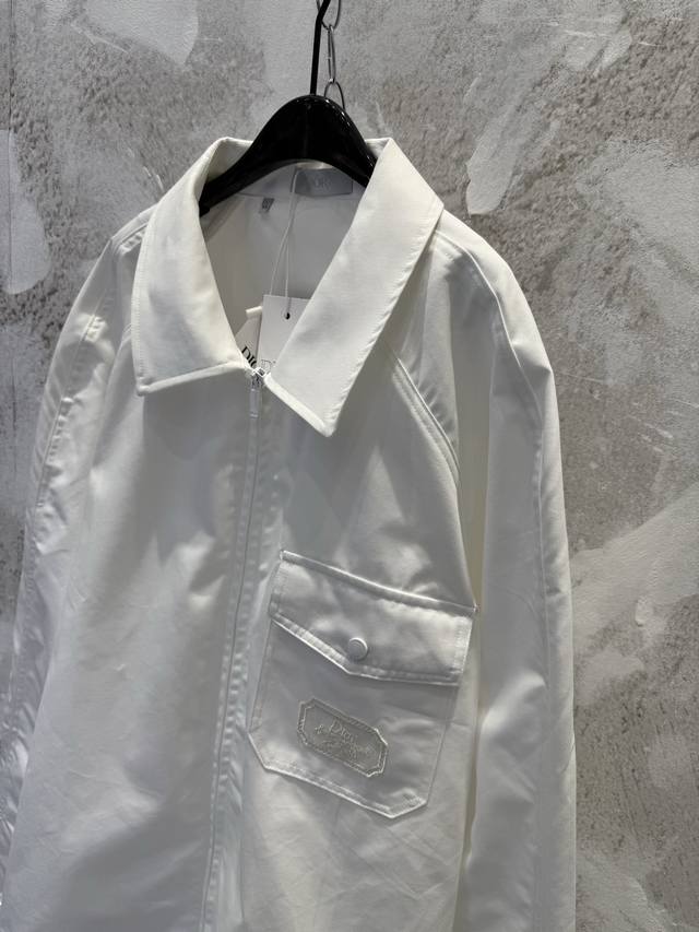 Di0R Cd Summer25White Light Cotton Envelope Pocket Zip Shirt JacketThis zip shir