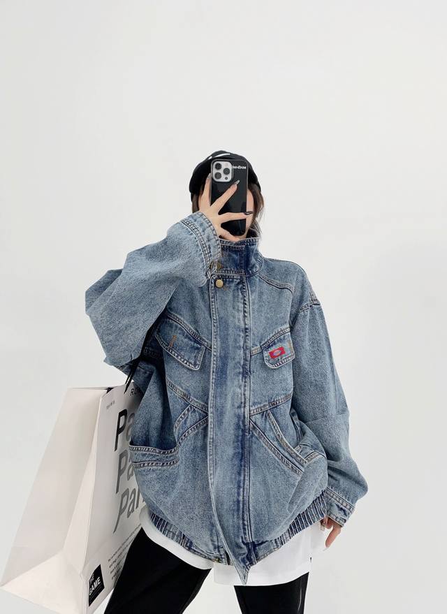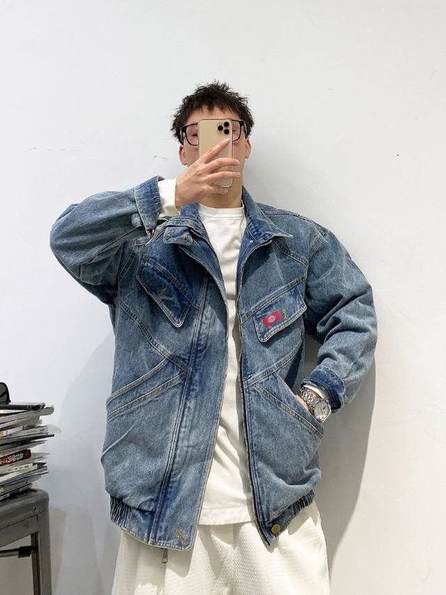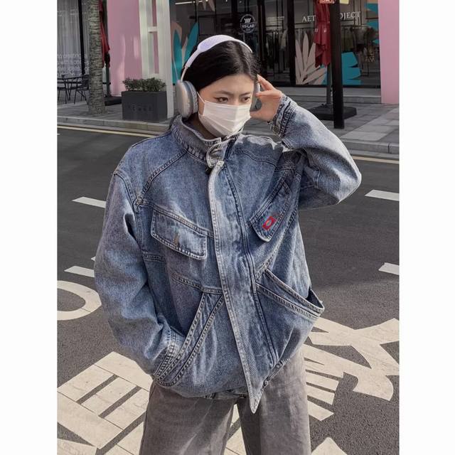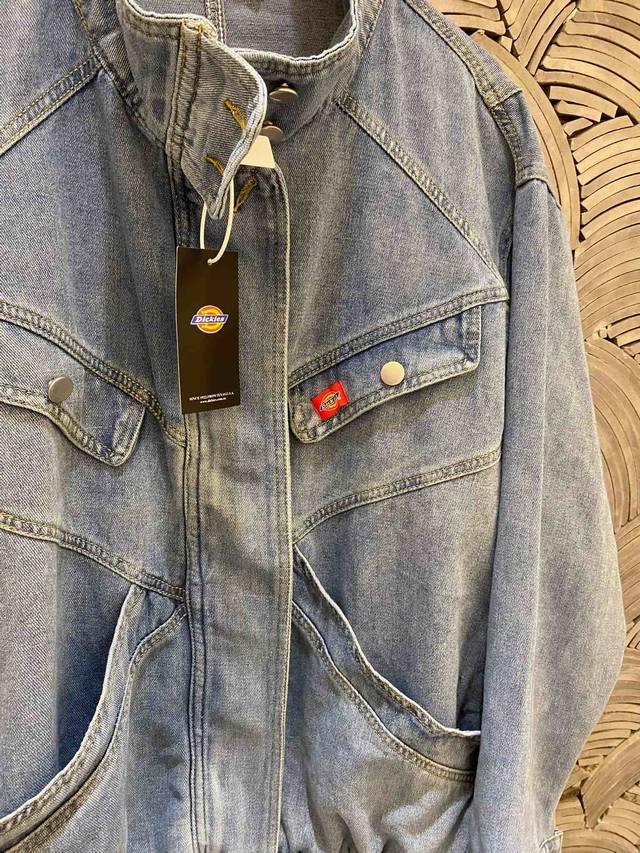 Dickies high-quality heavy-duty distressed retro embroidered red label denim heavyweight jacket for couples