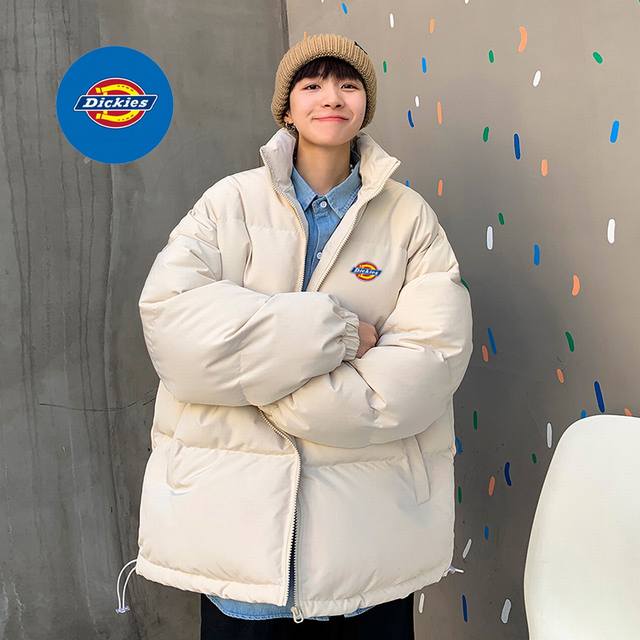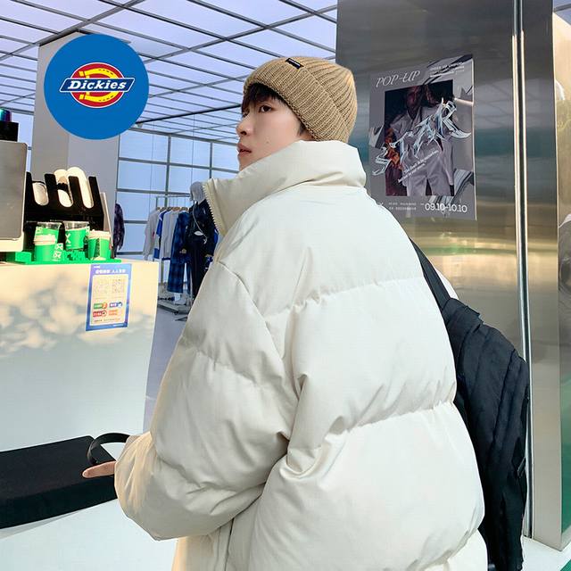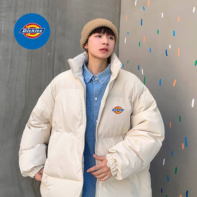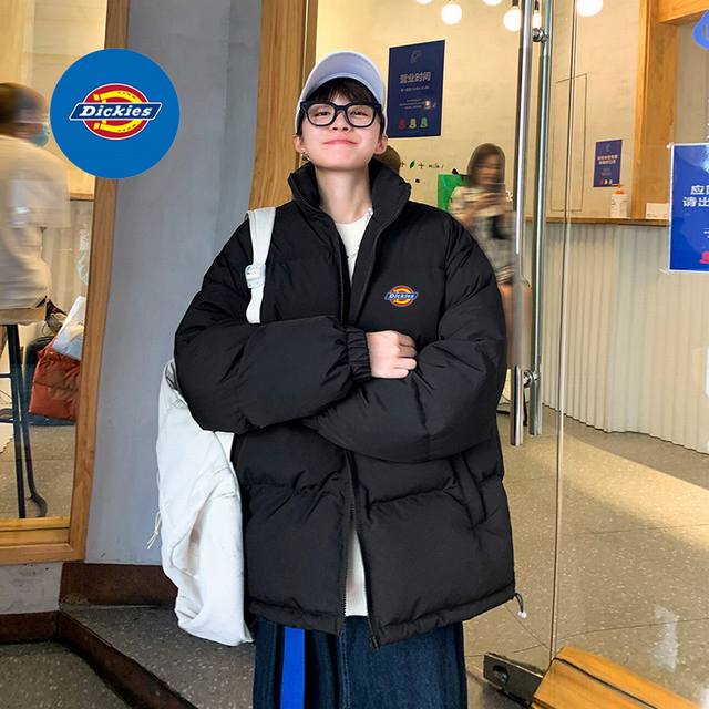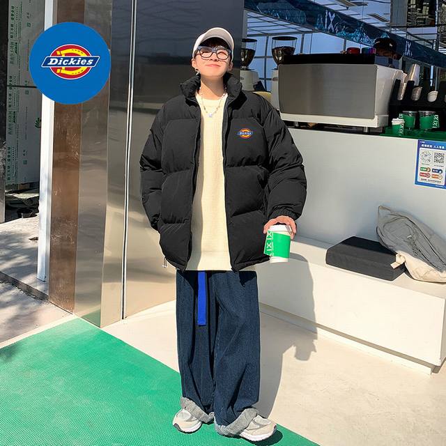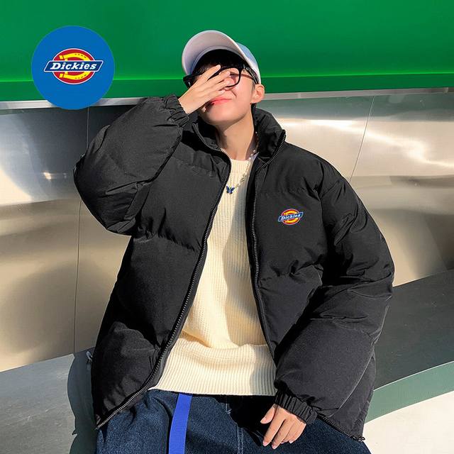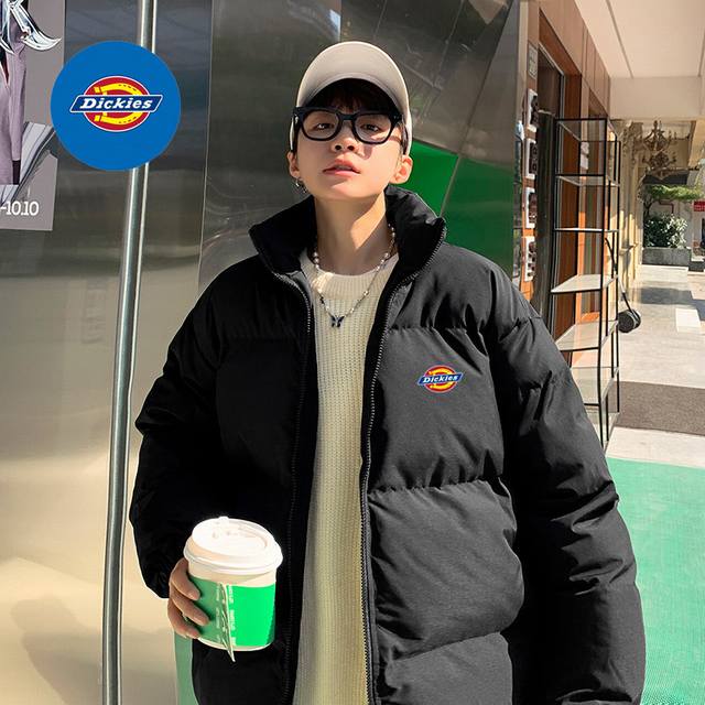 Dickies Overseas Basic Stand Collar Down Cotton Jacket, unisex style, classic Ddd logo, timeless, a very popular puffer jacket, filled with pure natural hand-stuffed down cotton, full and warm! Highly recommended by Xiaohongshu and Douyin influencers, high cost performance, looks amazing in person, suitable for couples and best friends! DDD Color: Black DDD