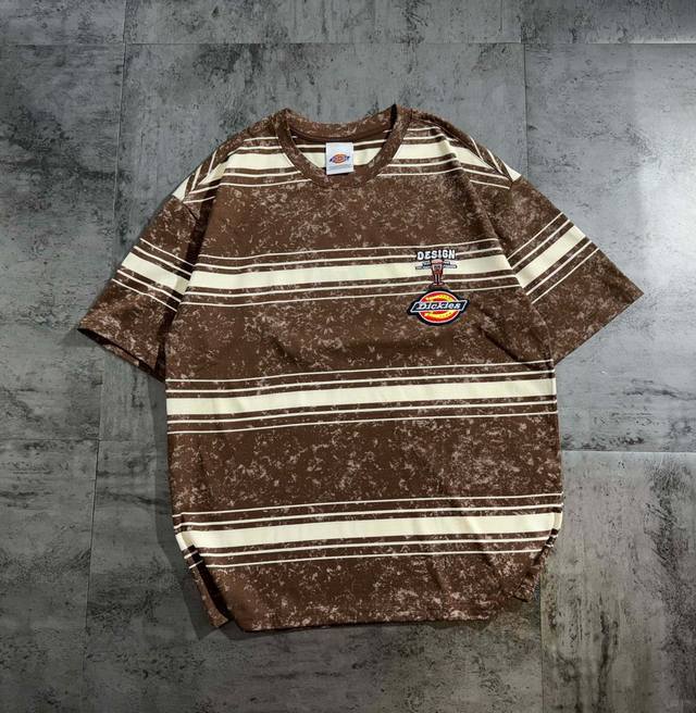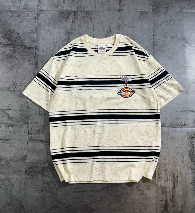 Dickies striped batik couple short-sleeved T-shirt The fabric is made of combed