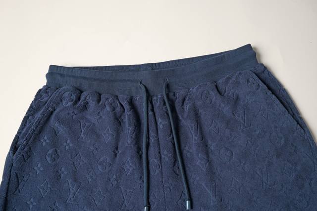 Differentiation from Standard Ddd New Arrival Ddd These soft French terry shorts are perfect for relaxing after a beach trip. Simple yet sophisticated, they feature an adjustable drawstring waist, while the black cotton blend fabric stands out with a full-coverage embossed Monogram signature. They can be worn as a set with a matching hoodie. Ddd Regular Fit Ddd Monogram Terry Ddd Knit Adjustable Waistband Ddd Two Side Pockets Ddd: Blue Ddd: Size X4 Ddd
