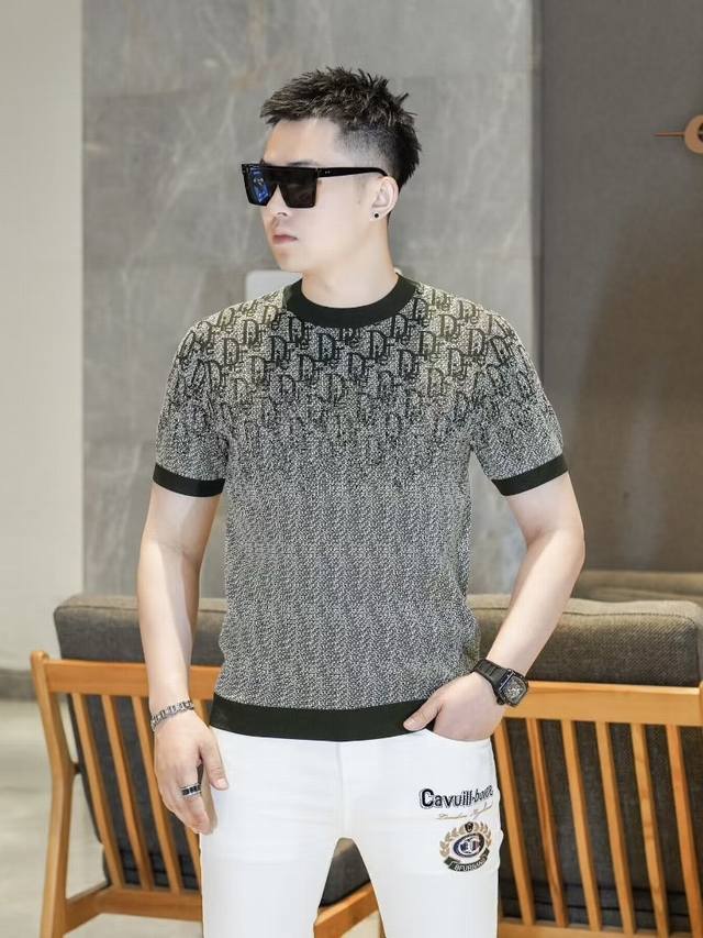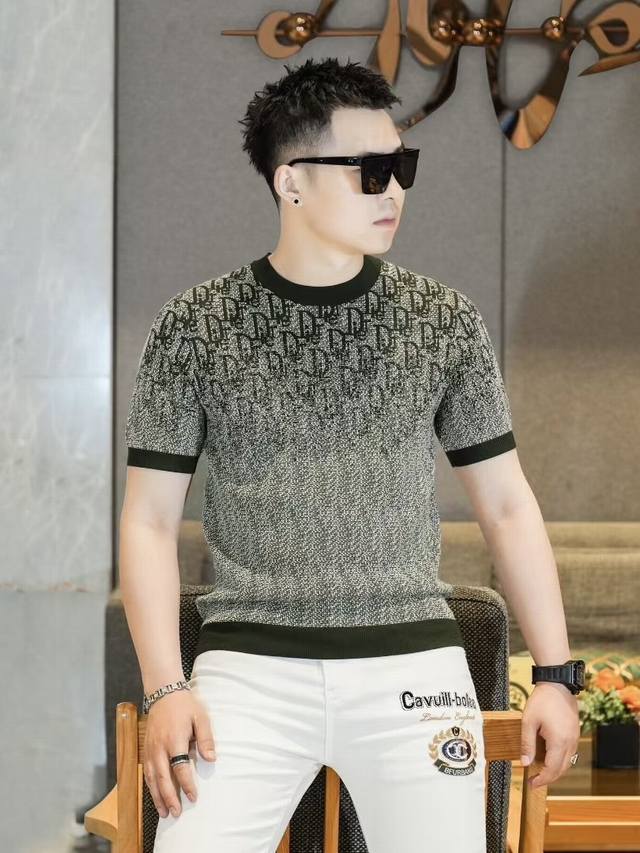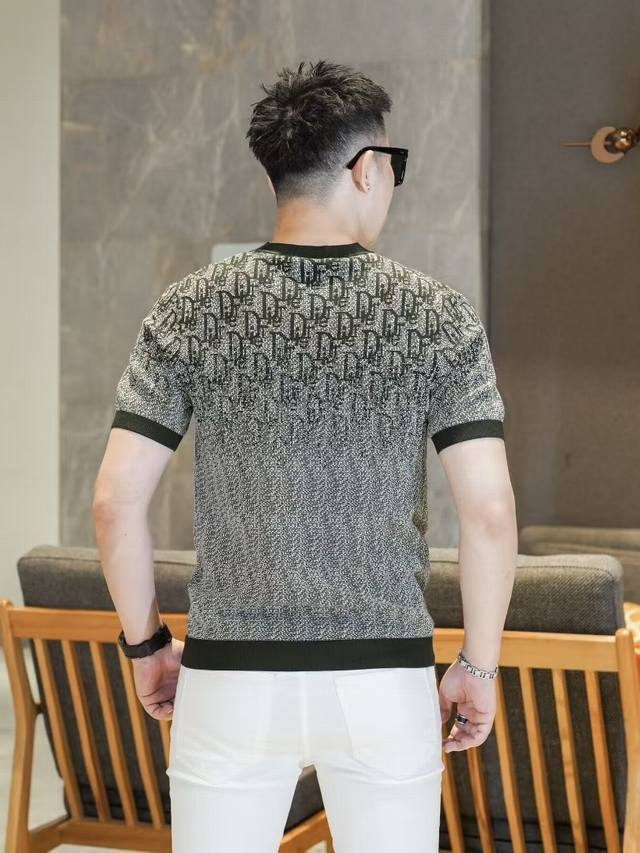 Dio 2025Fw Autumn/Winter New Men's Fashion Casual Imported Mulberry Silk Short-Sleeve Knitwear. A timeless and stylish piece that always draws attention with its unique flair. Made with custom-supplied Piquet knit fabric, the quilted design ensures an exceptionally smooth and delicate feel, free of any roughness, making it incredibly comfortable and breathable to wear. The classic straight-cut double-needle hem and ribbed knit cuffs create a sophisticated and luxurious look, with a thick, full texture and a brilliant sheen. Every detail exudes luxurious allure. Color: As pictured. Sizes: M-3XL.