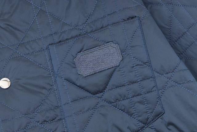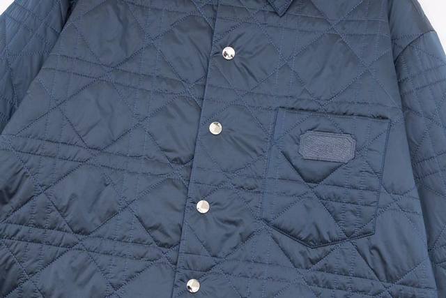 Dio* Fw Blade Cotton Shirt. This jacket/shirt reinterprets a classic design with a modern twist. Crafted from blue technical fabric, it features an all-over quilted cannage pattern and a Christian Dr Couture square on the chest patch pocket. Unique side vents with snap buttons allow for wearing it open or buttoned up. Blending traditional and modern styles, it pairs well with jeans or shorts for a sophisticated look. Sizes: Xs, S, M, L, D, D