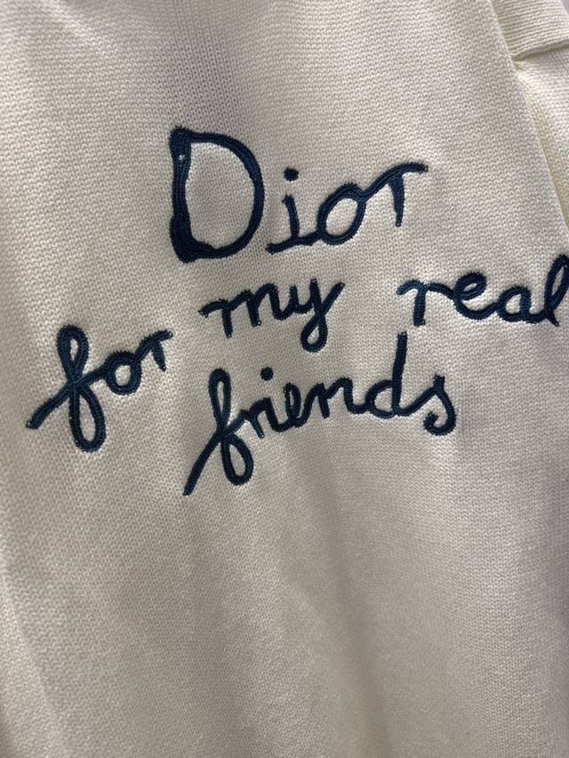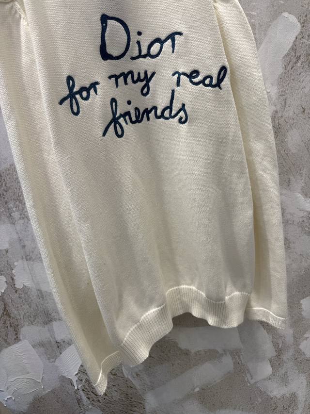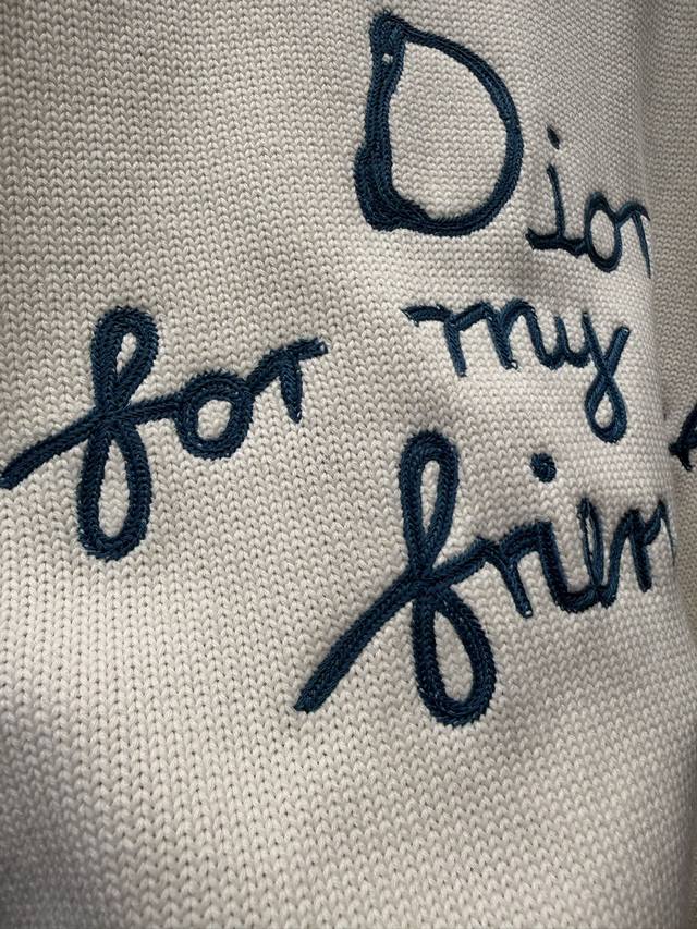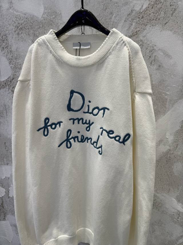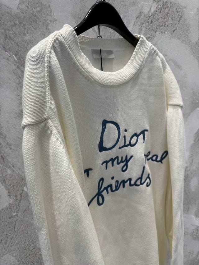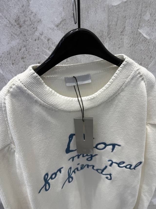 / Dio* Summer25Fwcd Embroidered Signature Slogan New Knitted Sweater Unisex Size: