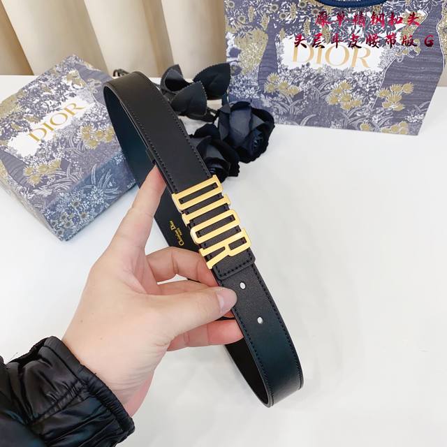 Dio women's original single-piece new product. The strap is made of double-sided Italian imported original cowhide leather, not the ordinary version on the market. The classic black color scheme is versatile and suitable for various occasions. The buckle has a high-quality design. Note the details. Width 3.0Cm. DDD