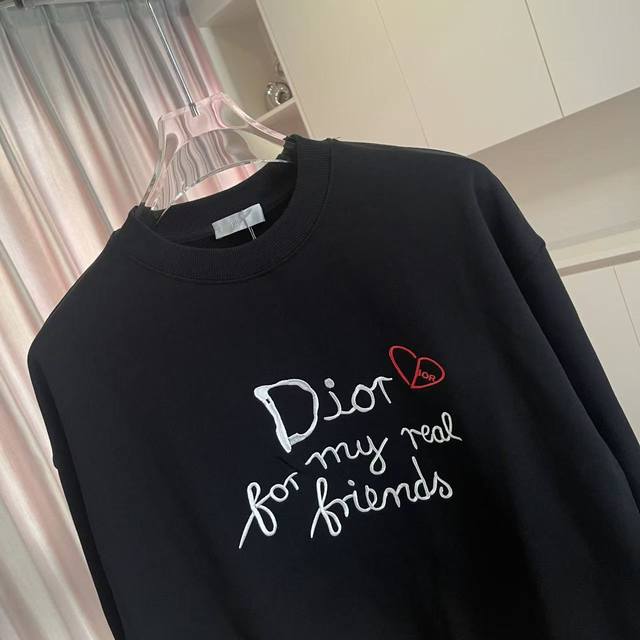 Dio*2025 Autumn/Winter New Style Personalized Embroidered Letter Logo, Custom Fabric 400G, Crew Neck Sweatshirt, Unisex. Colors: Black, White. Sizes: S, M, L, XL, XXL (five sizes available).