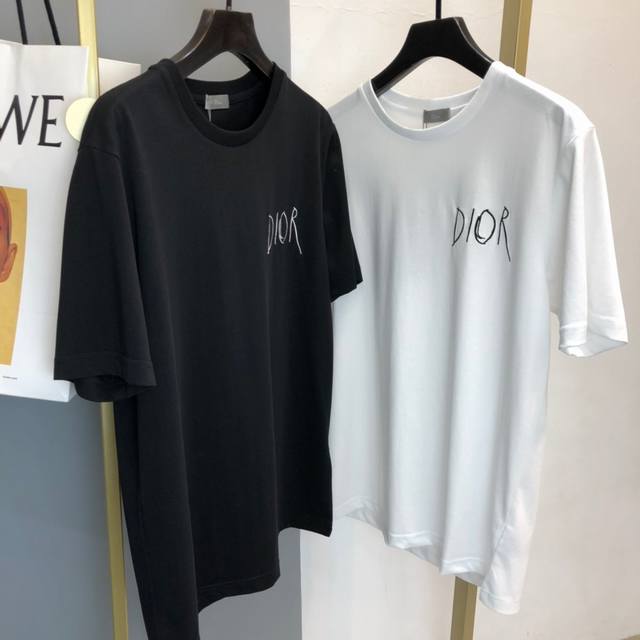 D*Ior Signature Logo Short-Sleeve T-Shirt, available in stores. Made of pure cotton, with a relaxed fit. Looks great on. Features an embroidered logo on the front and back, custom ribbed neckline, a perfect 1:1 replica, versatile for layering, stylish and simple. Sizes: S-XL DDD