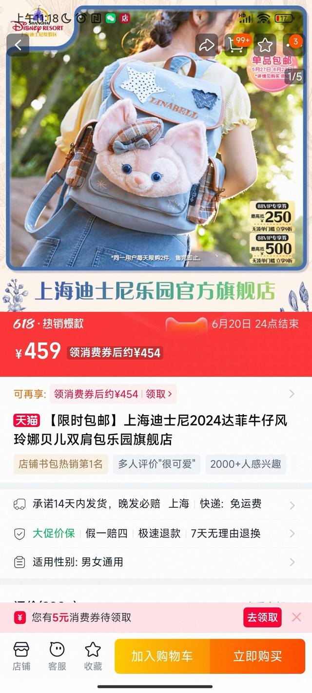 Disney's same style cute Duffy Bear + StellaLou backpack
