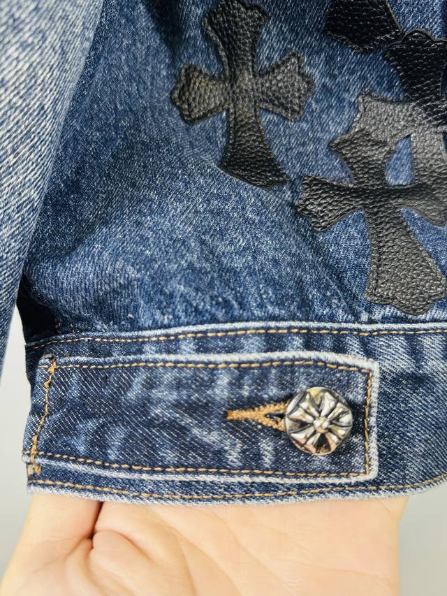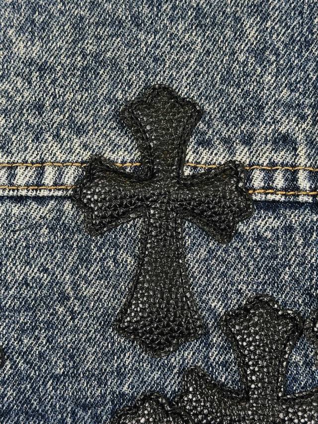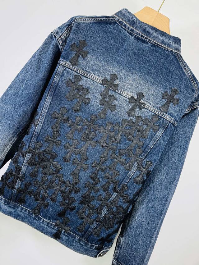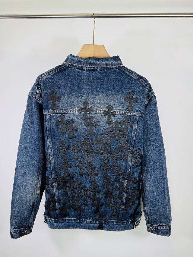 item is the perfect piece for this weather! Cool, oversized style with a classic white cross logo covering the entire garment, and the large leather cross label on the back is the finishing touch. It's stylish yet individualistic, understated yet perfect for spring and summer! Made from heavyweight, coarse-count 100% denim cotton with a heavy wash, ensuring a crisp and sturdy fit while remaining skin-friendly, comfortable, and breathable. The high-density embroidery of Sanskrit letters is exquisite, and the original mold-made buttons, cross label, and signature silver details add a touch of luxury! The relaxed, loose fit is effortlessly chic, unisex, and pairs perfectly with wide-leg pants for a trendy look. Most importantly, it's incredibly versatile, perfect for spring and autumn. Sizes: S, M, L, XL. Style Number: 3017.