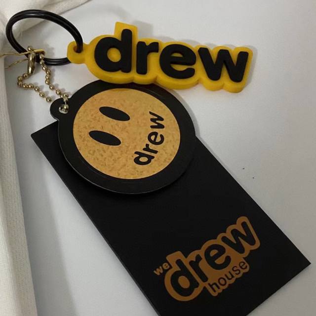 Accessories: Mustard yellow main label + all-over Drew large card + smiley face round card + Drew rubber tag keychain + anti-counterfeiting care label + anti-theft tag + dustproof paper + new packaging bag