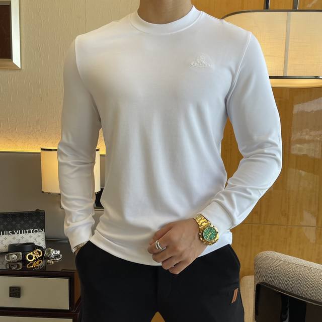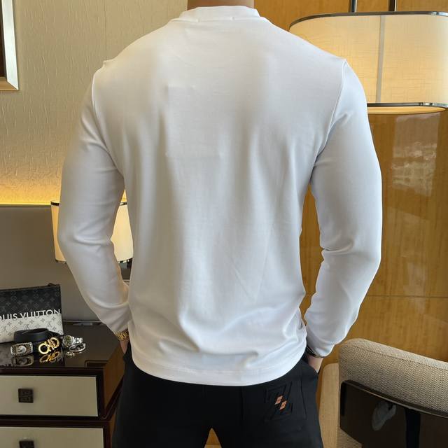 Empress Dowager Ss Autumn Hot Selling Long-Sleeved T-Shirt. Made with custom-made high-grade cotton blend fabric, featuring fashionable designer logo elements . Soft, delicate, comfortable, and warm, crafted with multiple processes. A must-have basic undershirt for every man's wardrobe, it can be paired with various outfits anytime, anywhere to meet your daily needs. The design is simple yet sophisticated. Grab yours now! Standard fit, sizes: M~3XL. Model 178cm, 145kg wears size L (