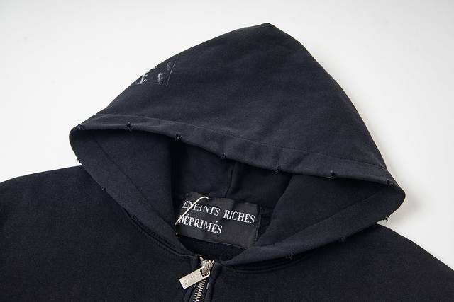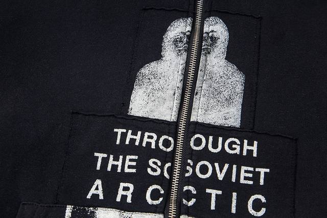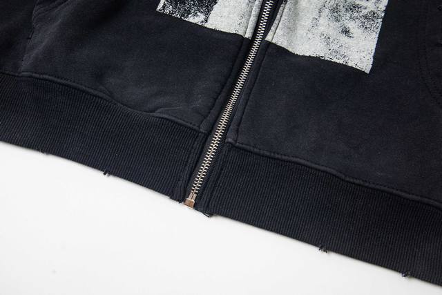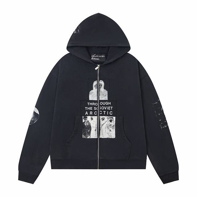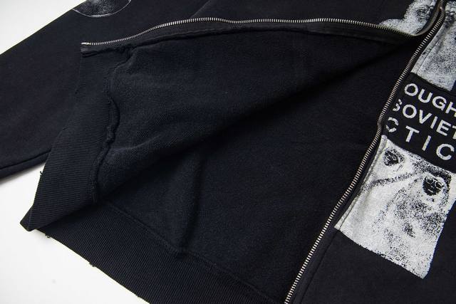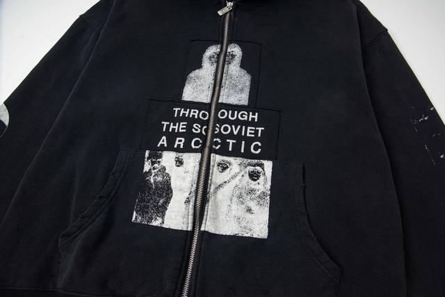 Erd Melancholy Rich Second Generation New Loose Casual Distressed Washed Retro " Polar Bear Crossing the Soviet Union " Applique Print Hooded Sweatshirt Zipper Jacket