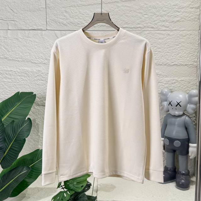 Kolon Sport Unisex Crew Neck Sweatshirt, Couple's Waffle Knit Long-Sleeve Pullover Sweatshirt. Colors: Black, Beige. Sizes: M/L, XL, 2XL. Length: 72, 74, 76, 77 mm. Shoulder Width: 50, 52, 54, 55 mm. Sleeve Length: 62, 63, 65, 66 mm. Chest: 116, 122, 127, 132 mm.