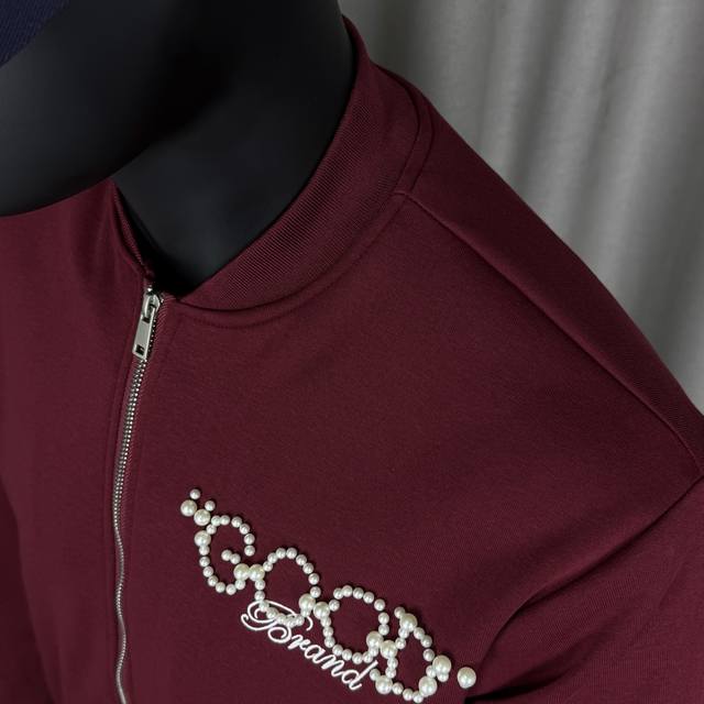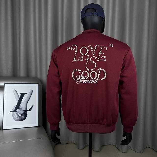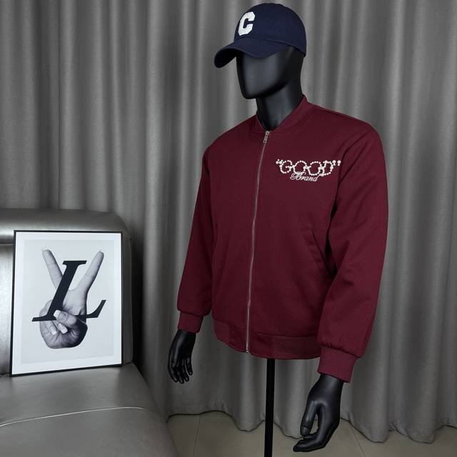 woolen pearl letter logo embroidered slogan baseball jacket beaded long-sleeved cardigan flight jacket for men and women