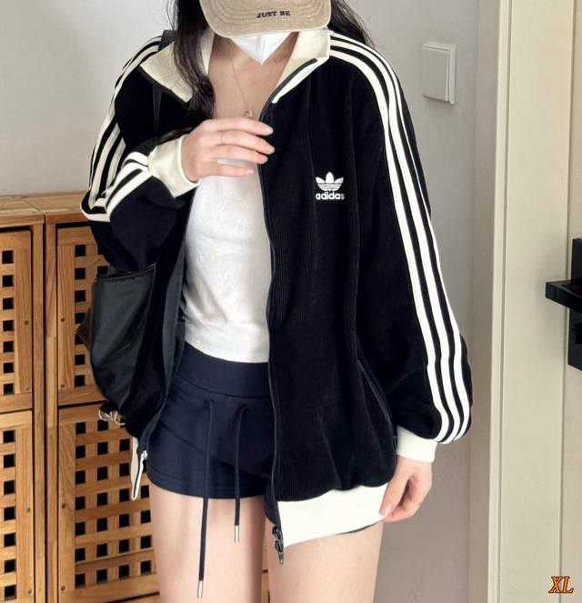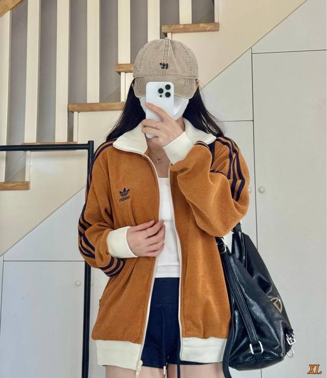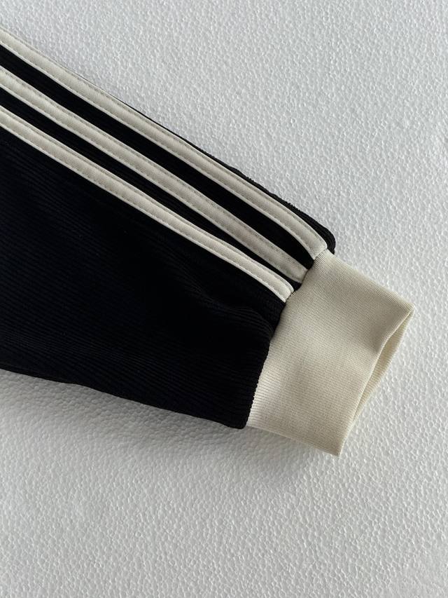 Exclusive real shot of new autumn corduroy jacket, unisex casual loose three-stripe embroidered logo cardigan, sports top, couple jacket, four colors available. This season's main style, ample stock, highly recommended, high-end quality, classic design, excellent workmanship, classic and versatile, excellent fit.